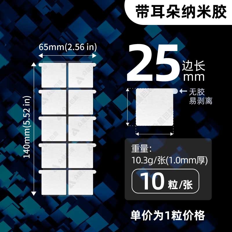 • 정사각형 변 길이 25mm, 1.0mm(접착제 두께), 개당 가격