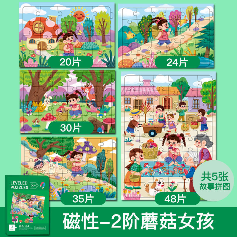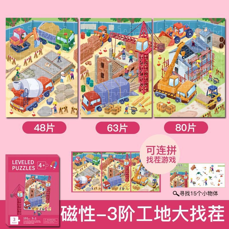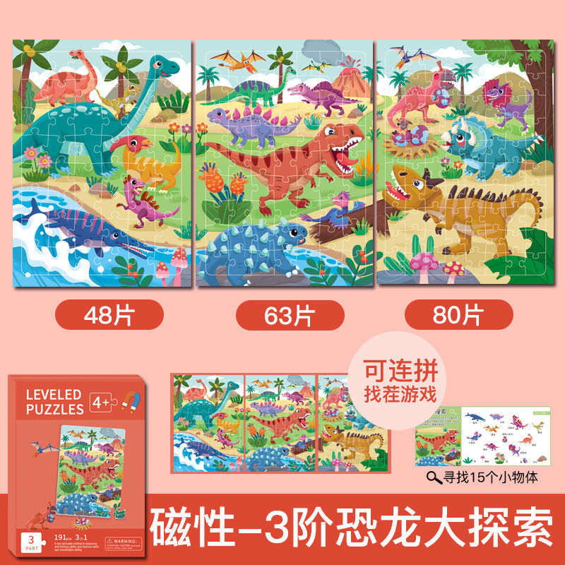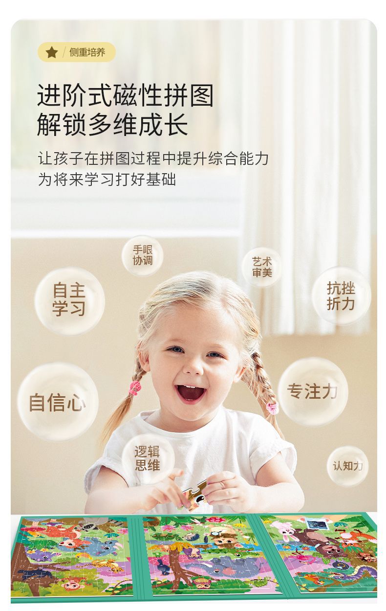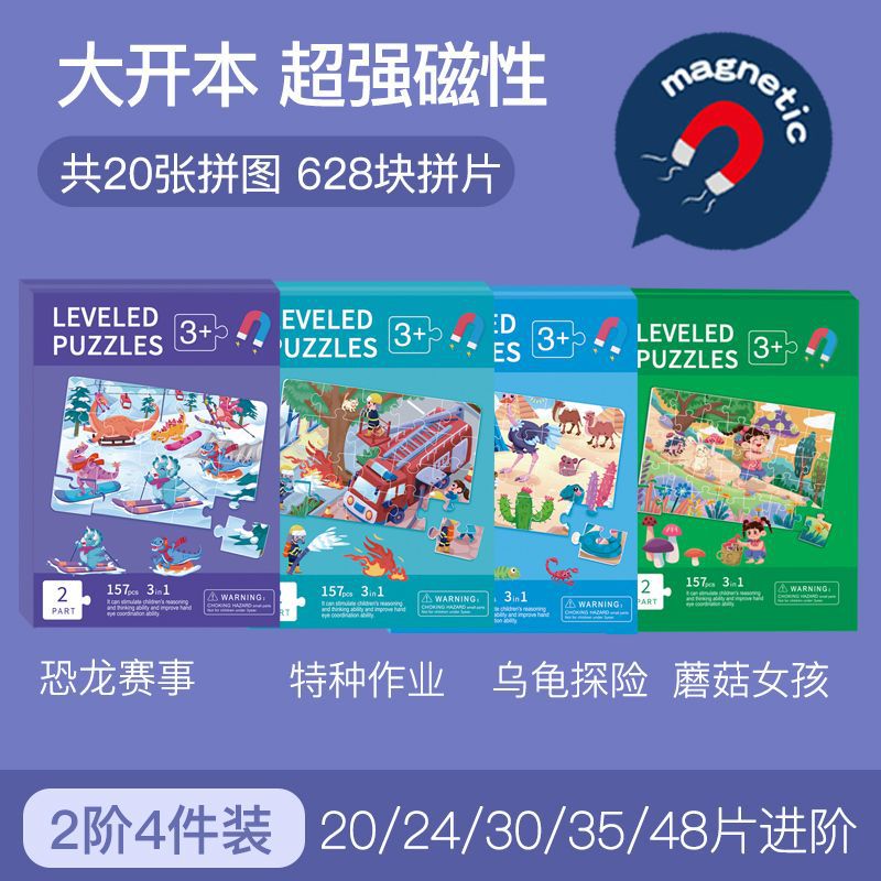 特别提醒:本厂产品激光切割,光滑无毛刺,图案清晰,1色彩鲜艳,非常贴合不易开裂,磁性强,12种系列可选,1-3阶不同难度,让孩子放心玩,是一块激发孩子学习兴趣磁性拼图书拼图。