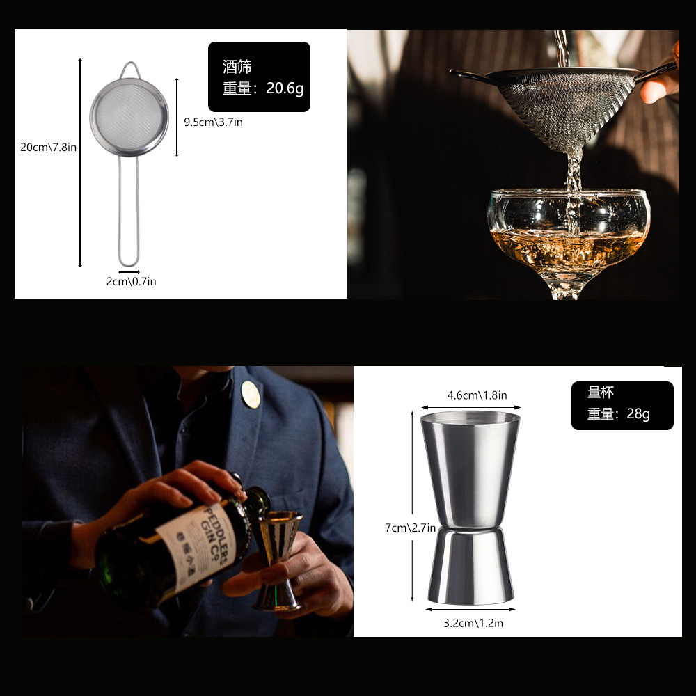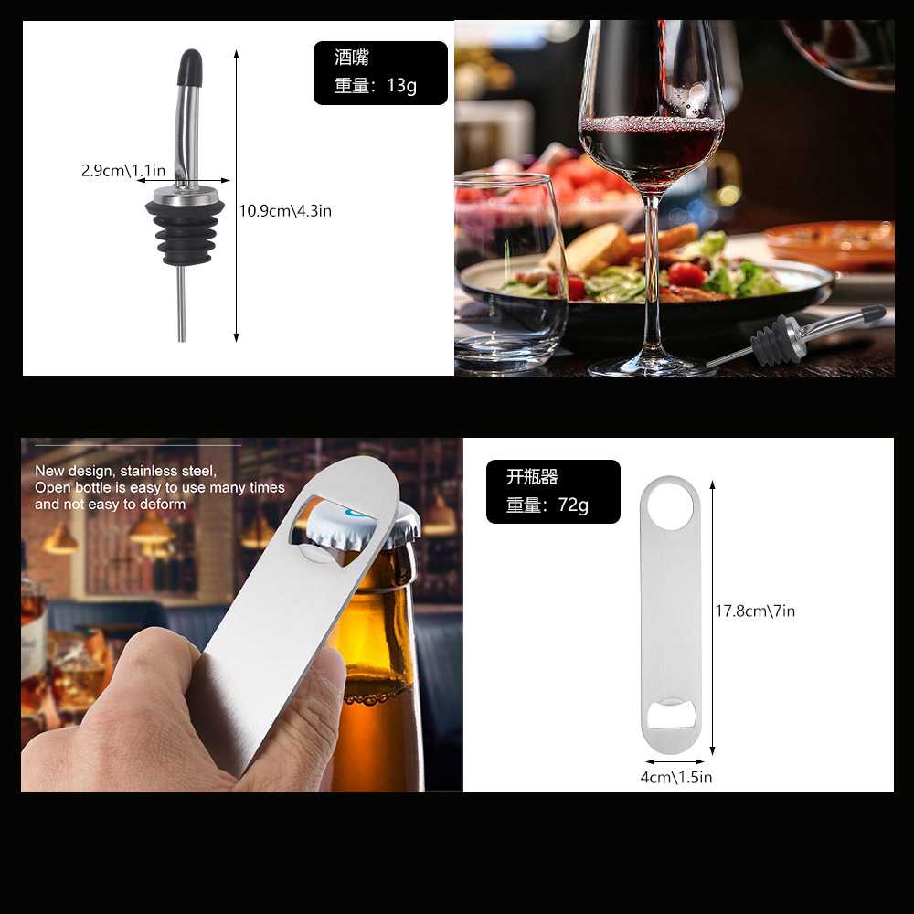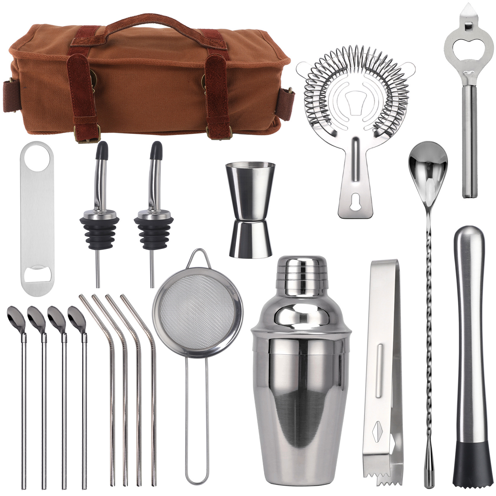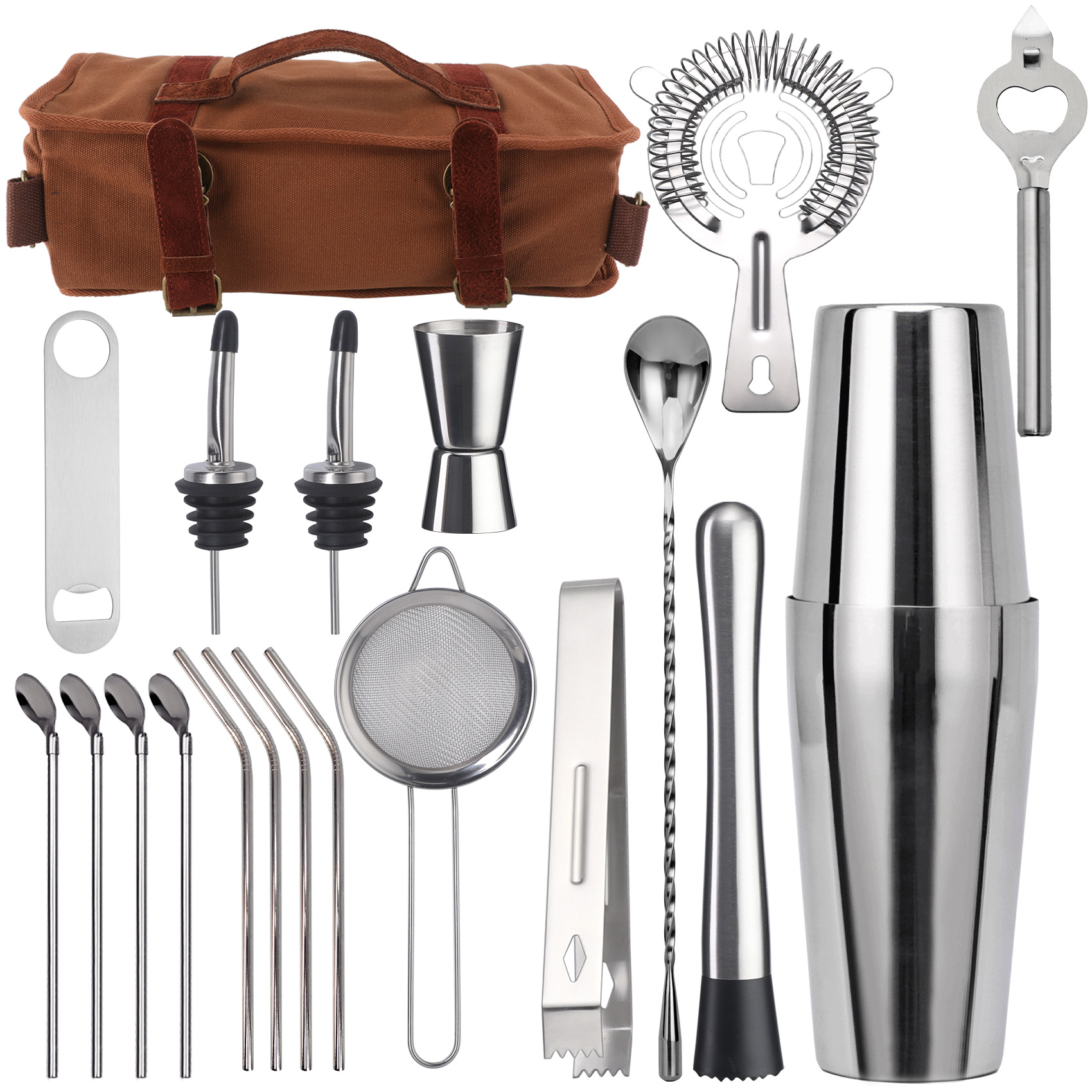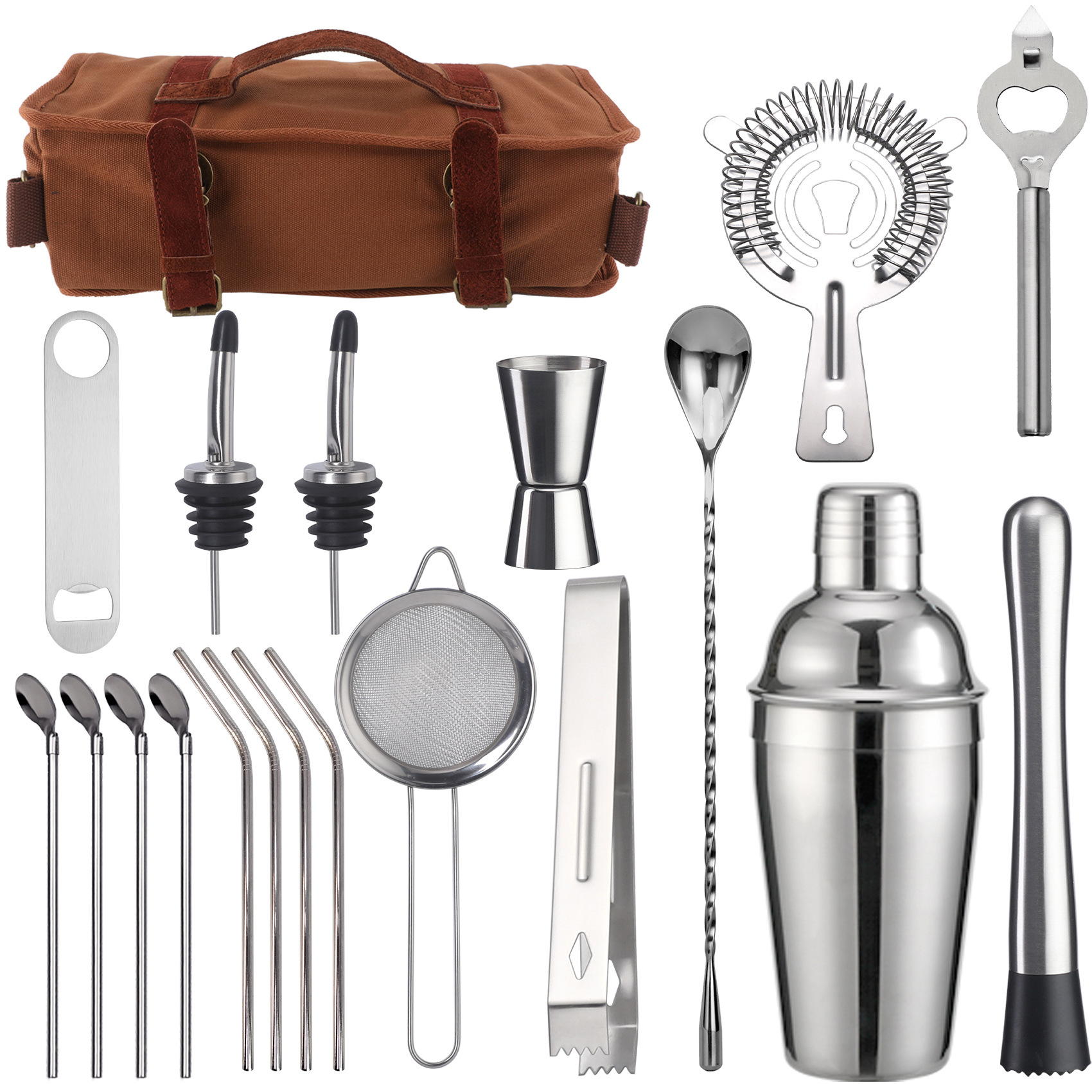 국경 간 직접 공급 스테인레스 스틸 칵테일 믹서 20 세트 바 도구 칵테일 가방 야외 어깨 가방 와인 세트 가방