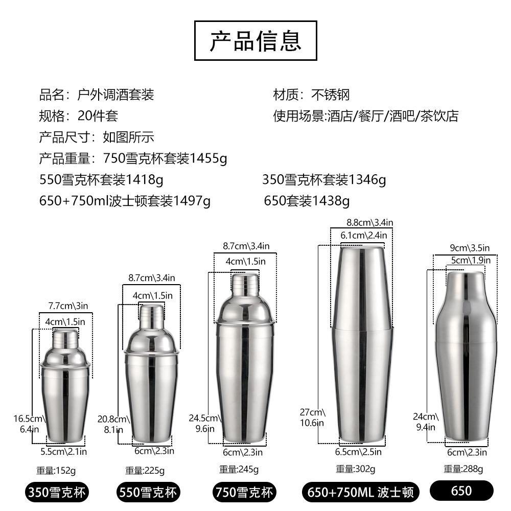 국경 간 직접 공급 스테인레스 스틸 칵테일 믹서 20 세트 바 도구 칵테일 가방 야외 어깨 가방 와인 세트 가방스토어 가기