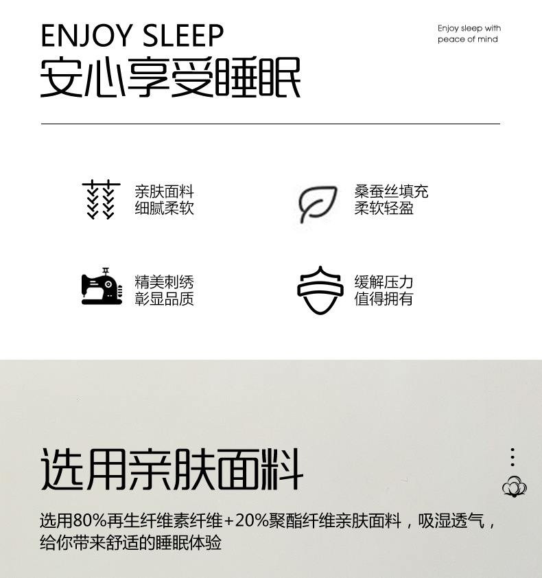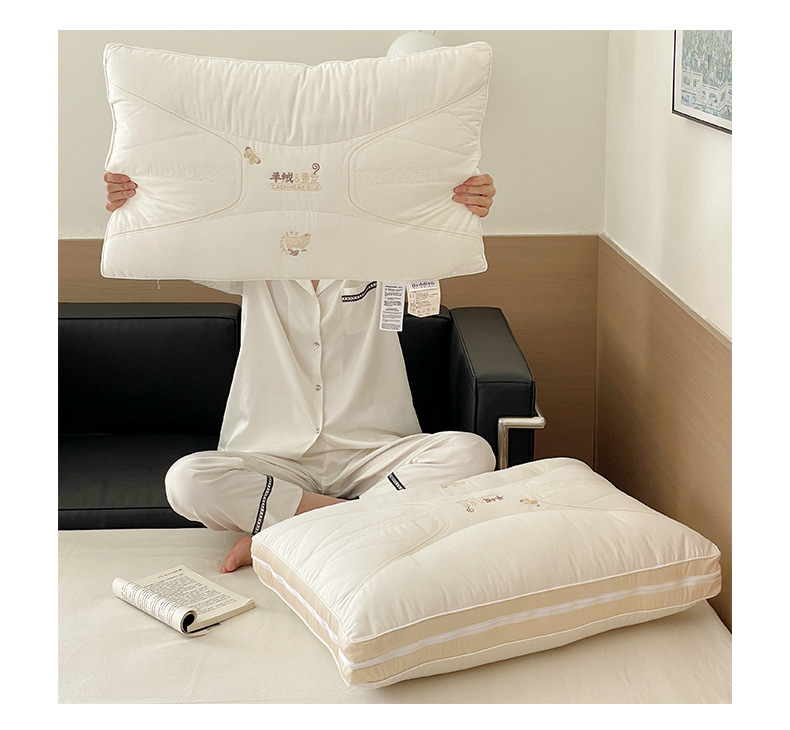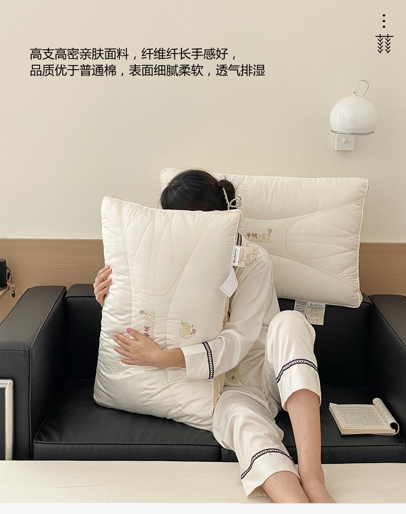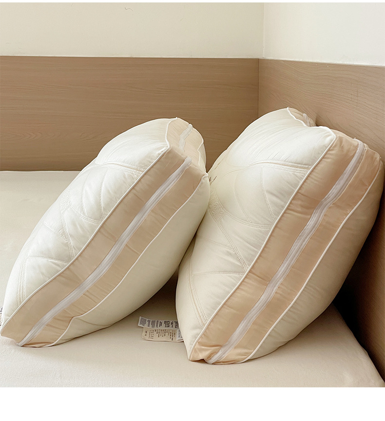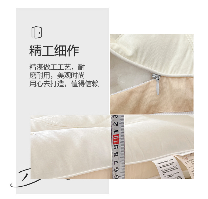 2. 羊绒蚕丝二合一枕,面部内夹20%桑蚕丝填充,柔软贴服,拉链可自由随时调整高度,高低结合,随意拆卸组合,大人小孩都可以使用