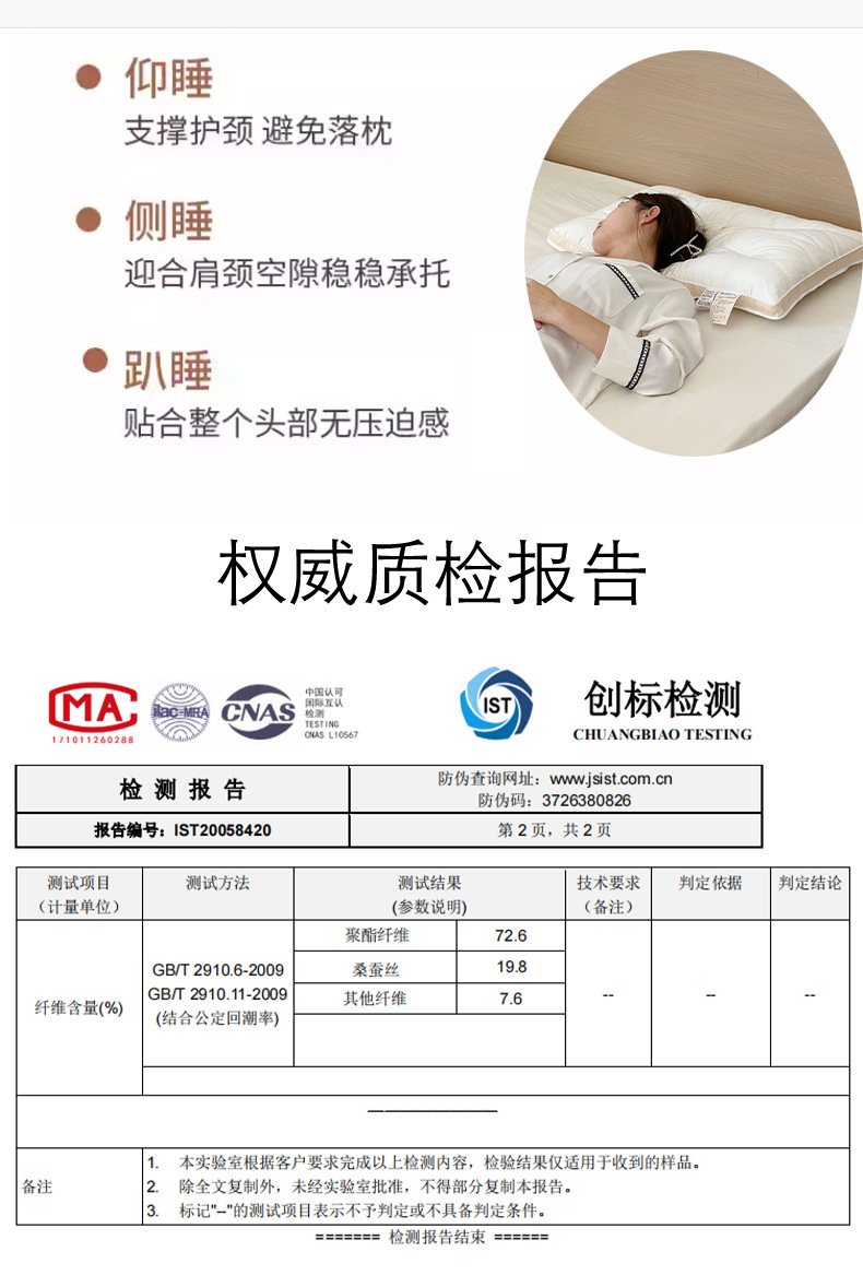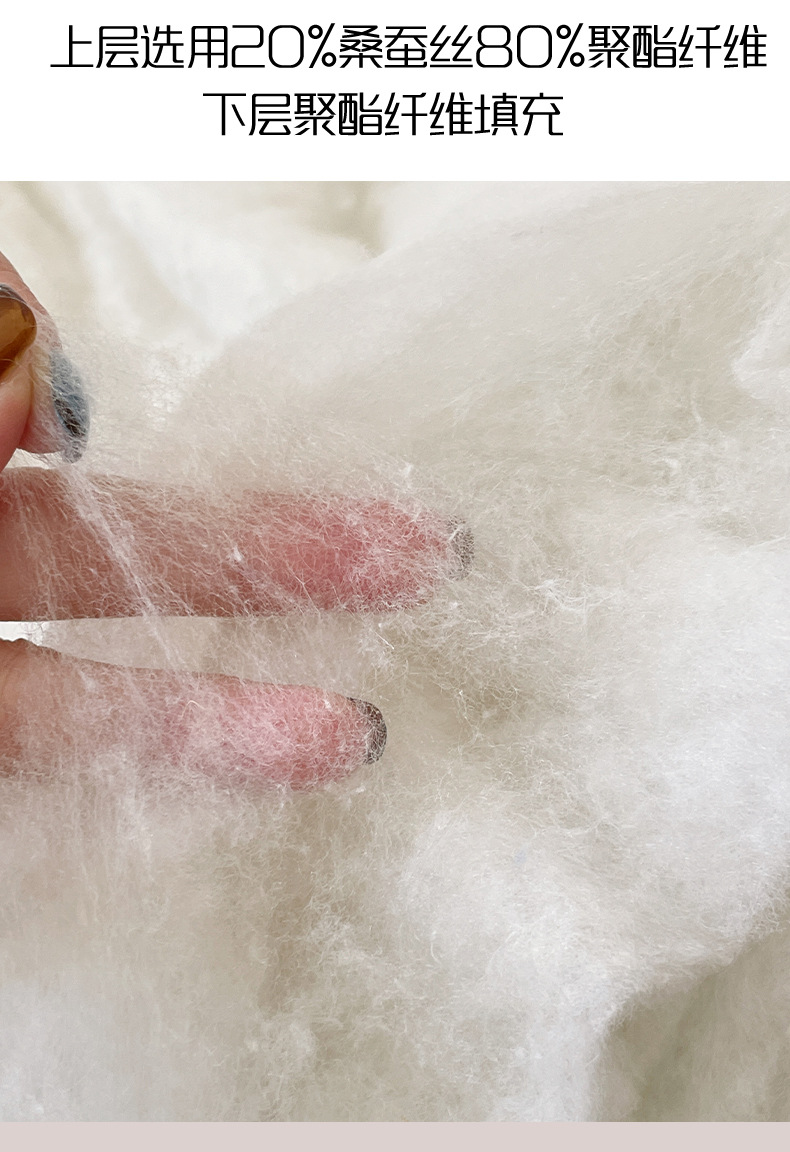 上层填充物:(面部夹20%桑蚕丝+80%聚酯纤维)