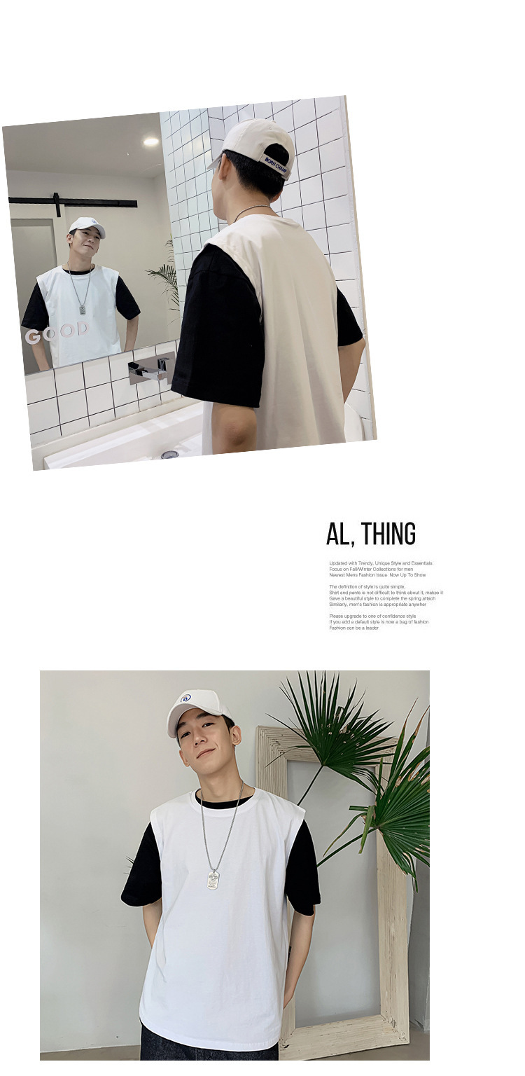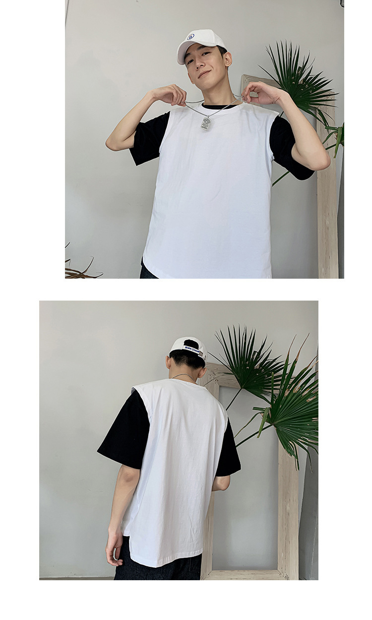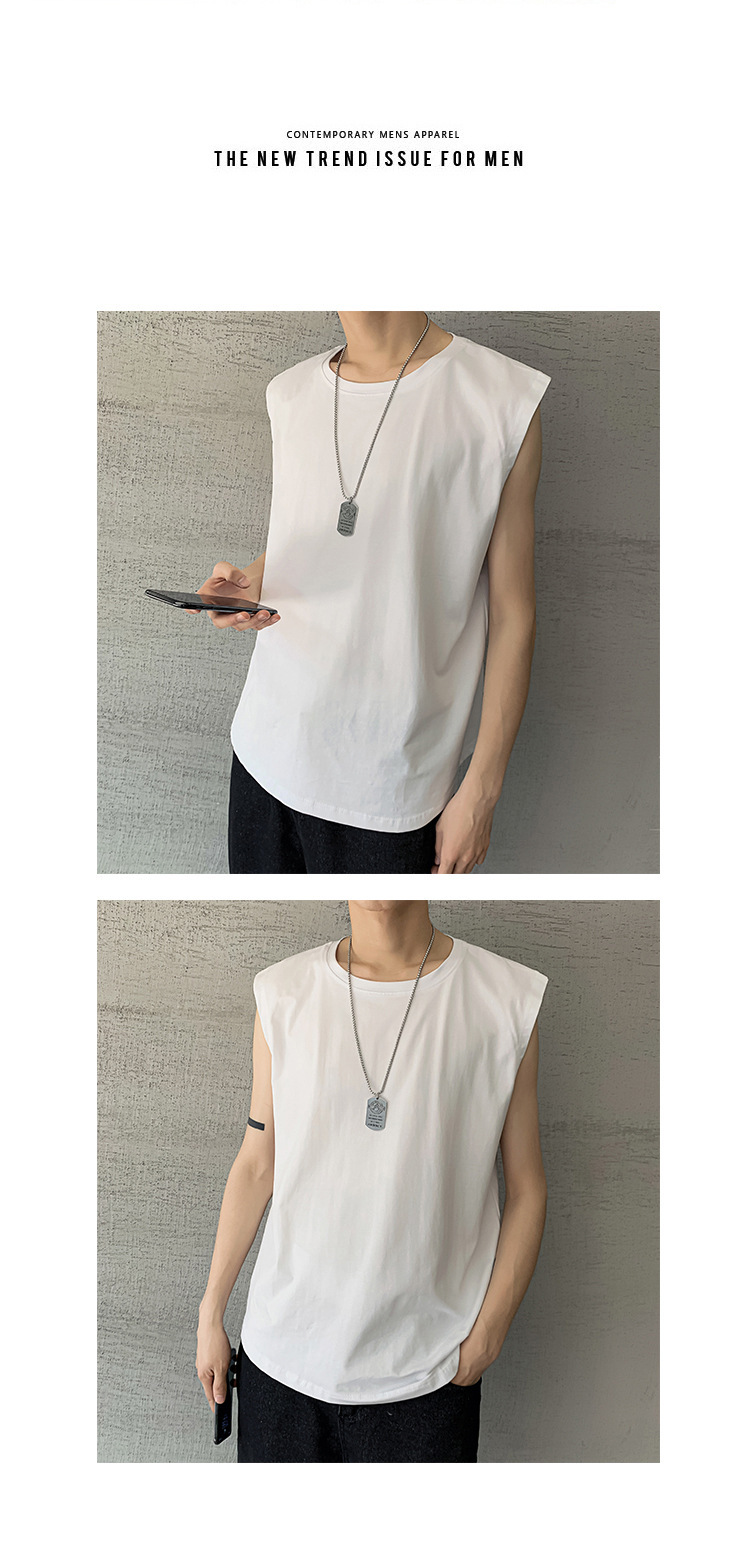 스포츠 조끼 남성용 느슨한 여름 패션 브랜드, 흰색 단색 피트니스 민소매 양복 조끼 셔츠 반팔 티셔츠 남성
