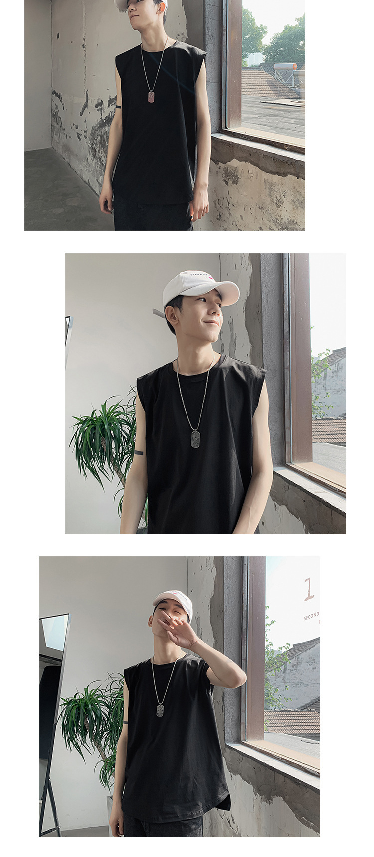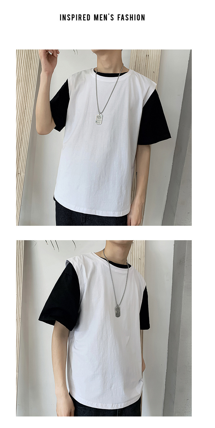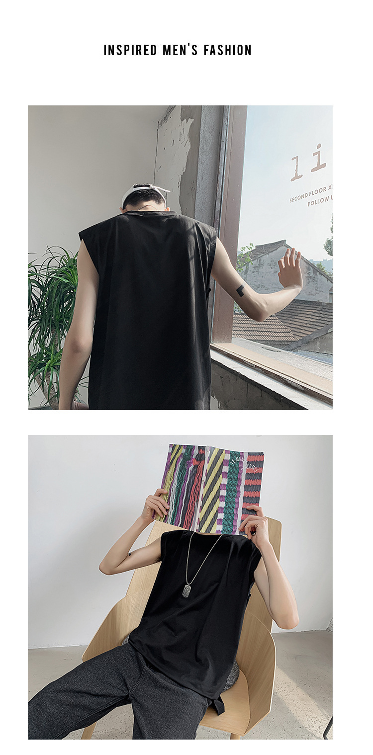스포츠 조끼 남성용 느슨한 여름 패션 브랜드, 흰색 단색 피트니스 민소매 양복 조끼 셔츠 반팔 티셔츠 남성