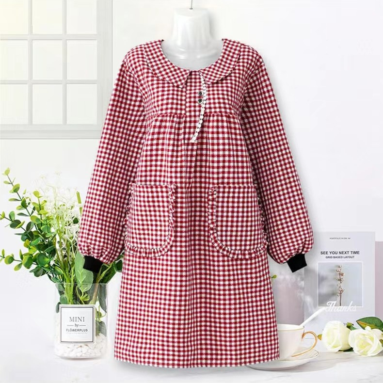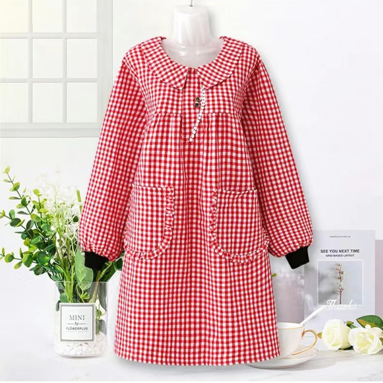 도매 긴팔 앞치마 주방 가정용 방수 오일 방지 커버 성인 패션 간단한 작업 사무실 옷 전체적으로
