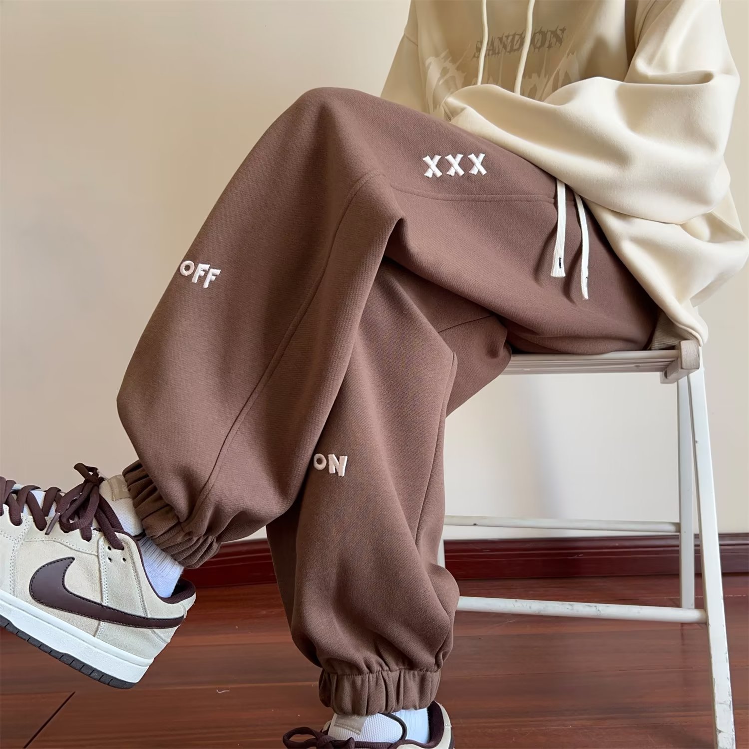 셔츠 덜 의류 기모 스웨트 팬츠 남성용 홍콩 스타일 느슨한 가을과 겨울 새로운 패션 트렌디 한 발목 묶인 캐주얼 바지스토어 가기