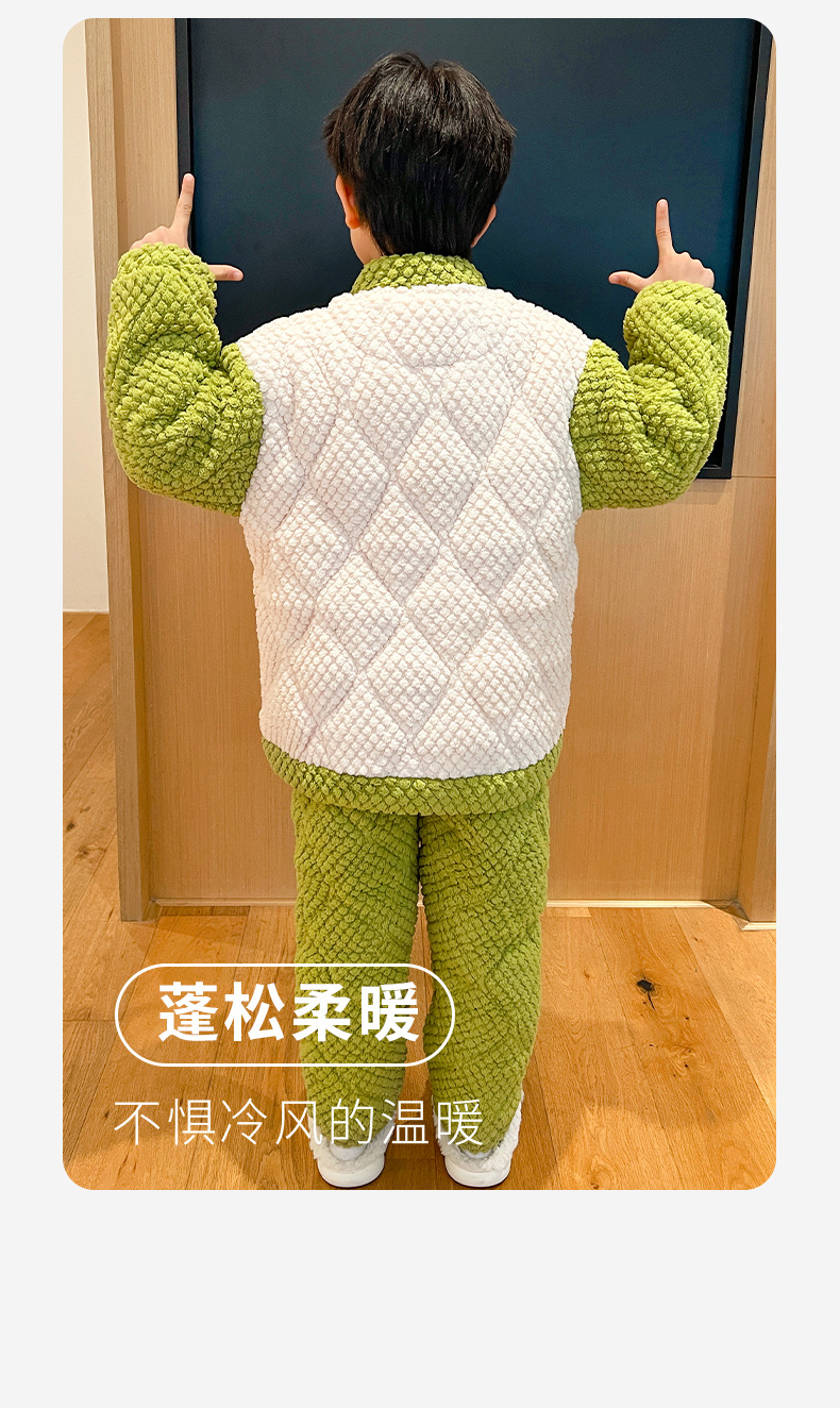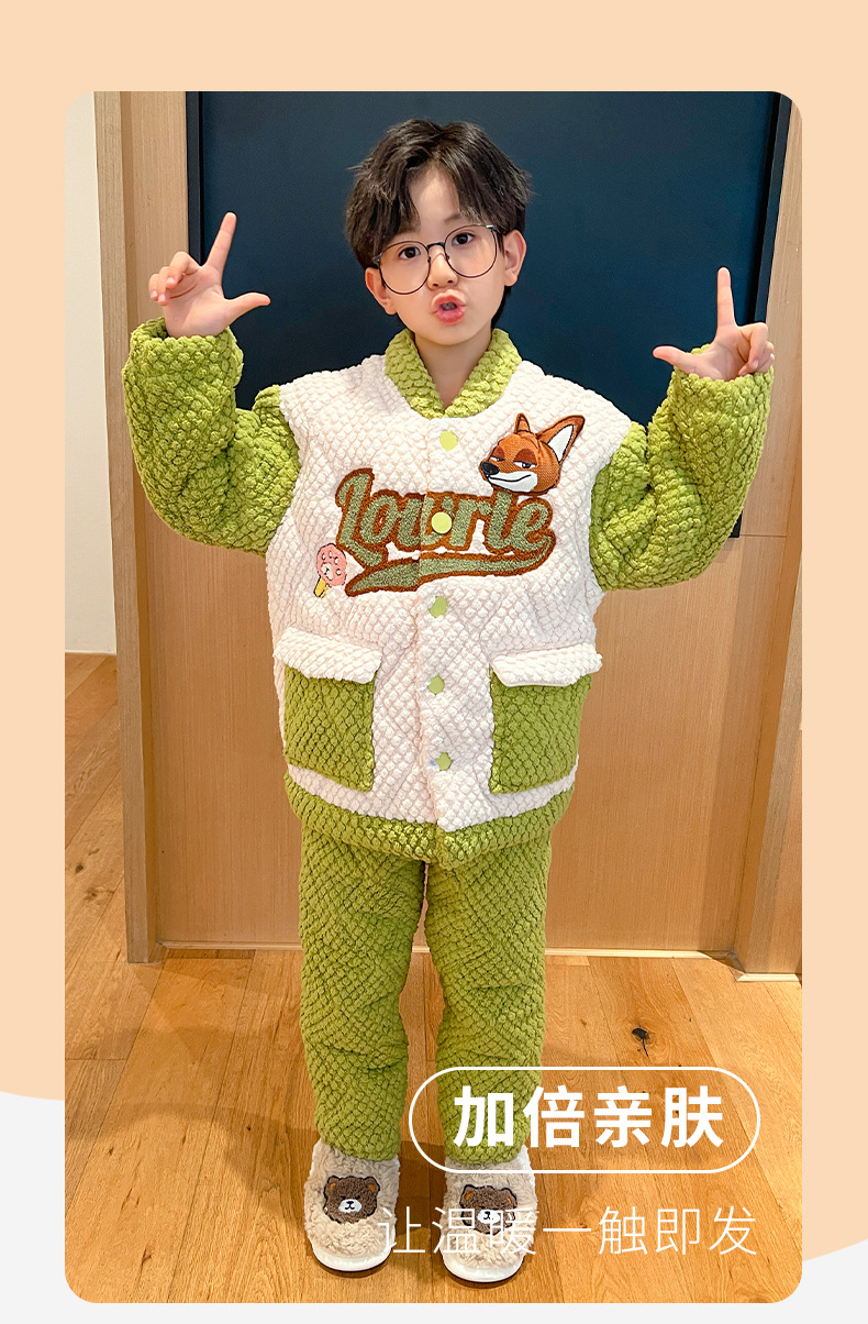 소년 잠옷 겨울 3 층 퀼트 세트 나이가 많은 소년 기모 두꺼운 만화 어린이 플란넬 홈웨어스토어 가기