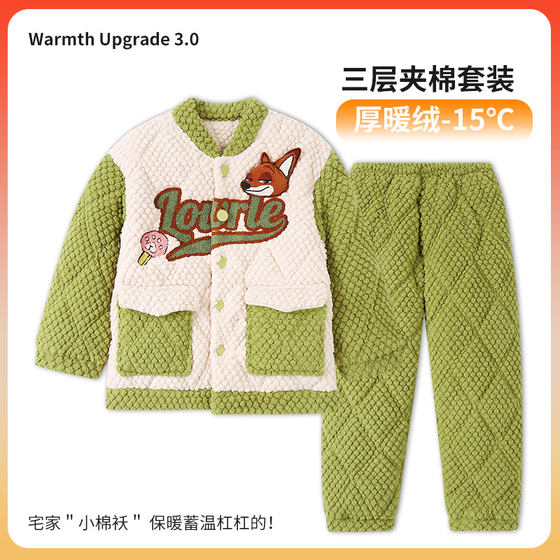 소년 잠옷 겨울 3 층 퀼트 세트 나이가 많은 소년 기모 두꺼운 만화 어린이 플란넬 홈웨어
