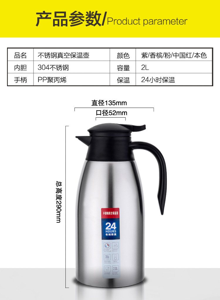 선물용 304 스테인리스 스틸 유럽식 보온병 가정용 대용량 진공 보온병 상업용 호텔 ktv 온수병스토어 가기