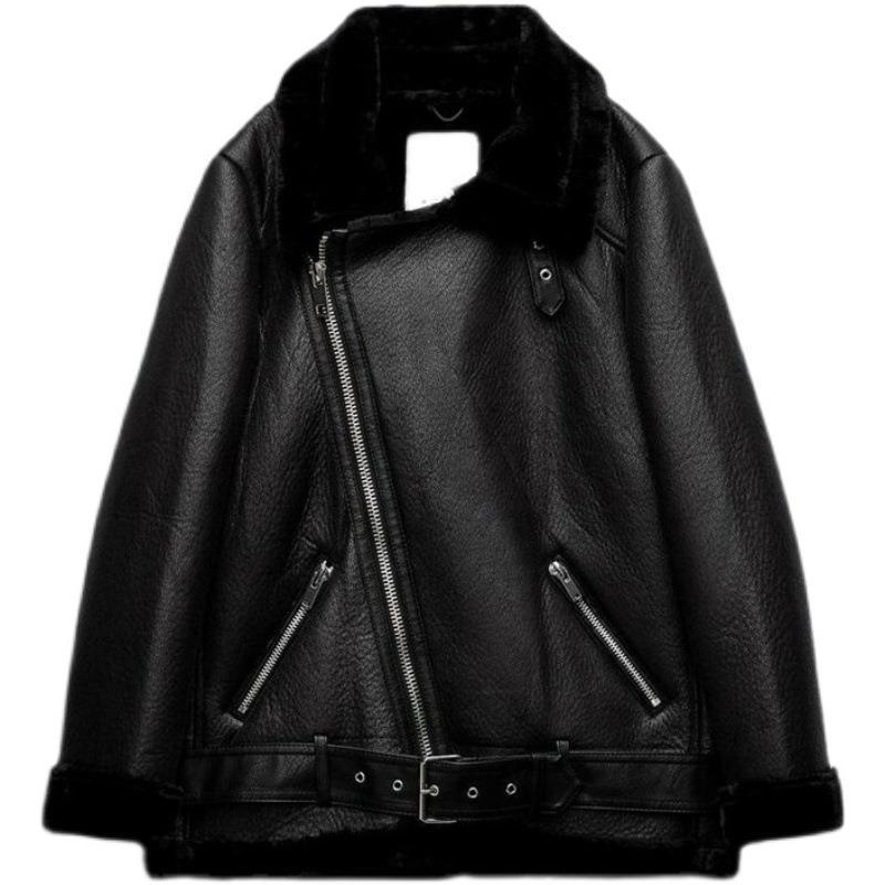 PB&ZA 신형 오토바이 가죽과 모피 일체형 따뜻한 양면 재킷 여성 02969240800 296924