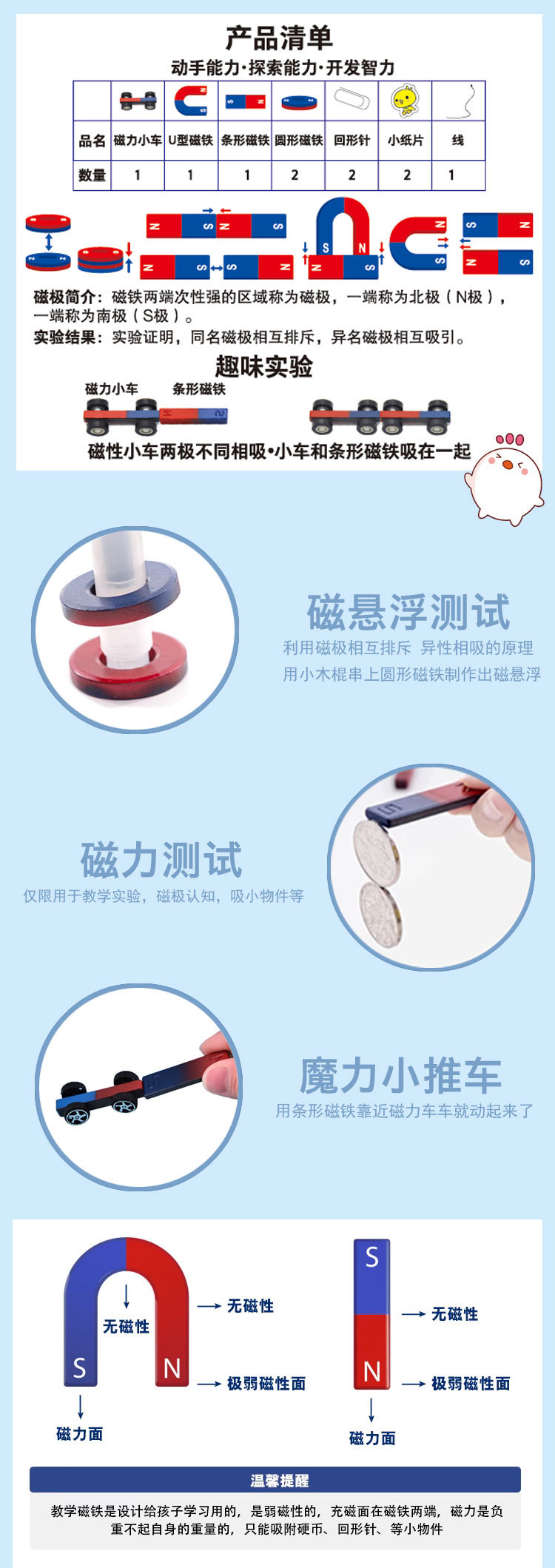도매 창조적 인 자기 힘 세트 초등 및 중등 학교 학생 자석 긍정적이고 부정적인인지 재미 과학 실험 교육 보조 재고