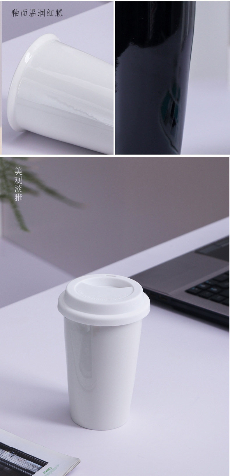 실리콘 커버 로고가있는 북유럽 스타일의 창조적 인 이중 층 절연 물 컵 핸들 우유 커피 컵 세라믹 머그잔스토어 가기