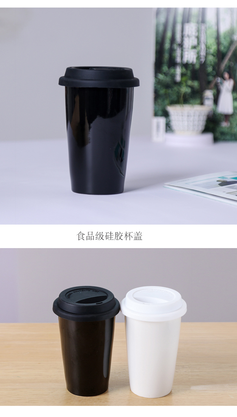 실리콘 커버 로고가있는 북유럽 스타일의 창조적 인 이중 층 절연 물 컵 핸들 우유 커피 컵 세라믹 머그잔