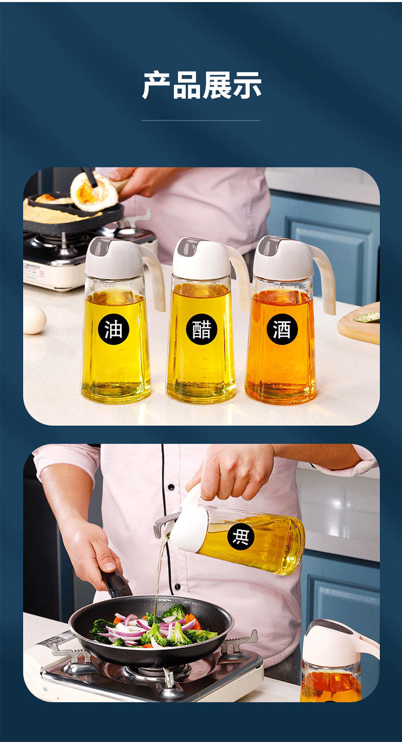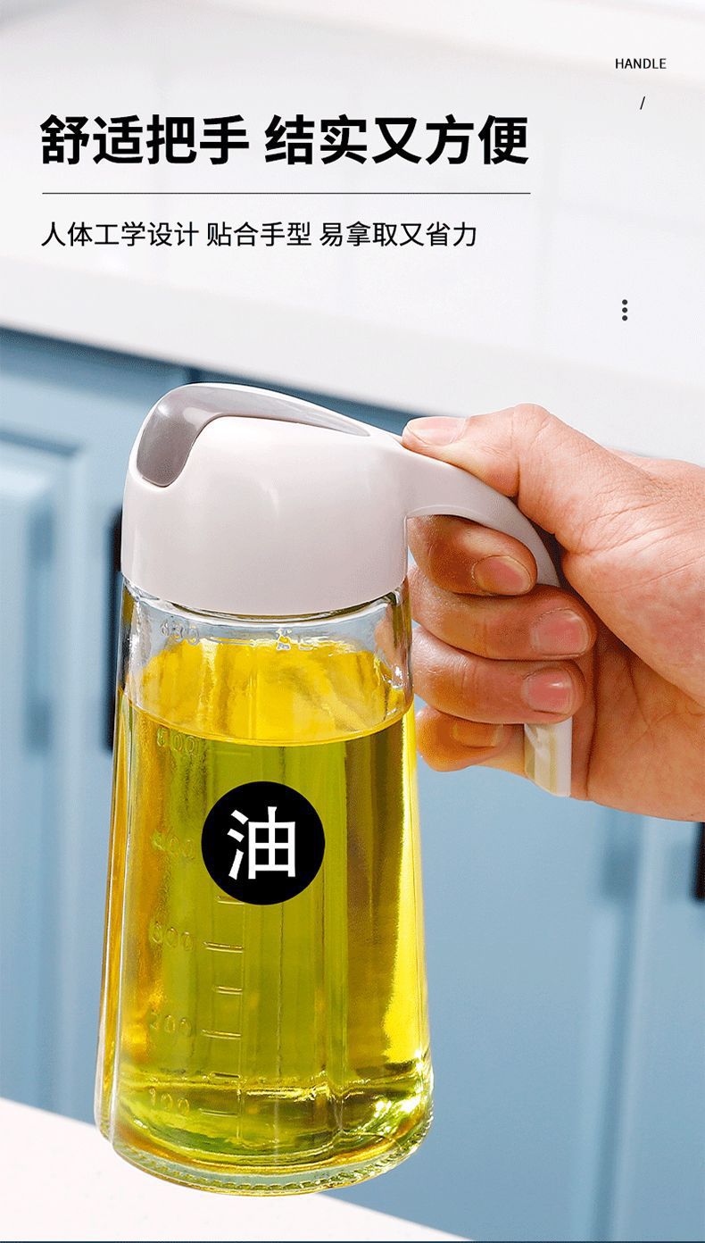 뚜껑 간장 식초 유리 조미료 병을 가진 스케일 대용량 오일 병이있는 주방 가정용 자동 개방 및 폐쇄 유리 오일 포트스토어 가기