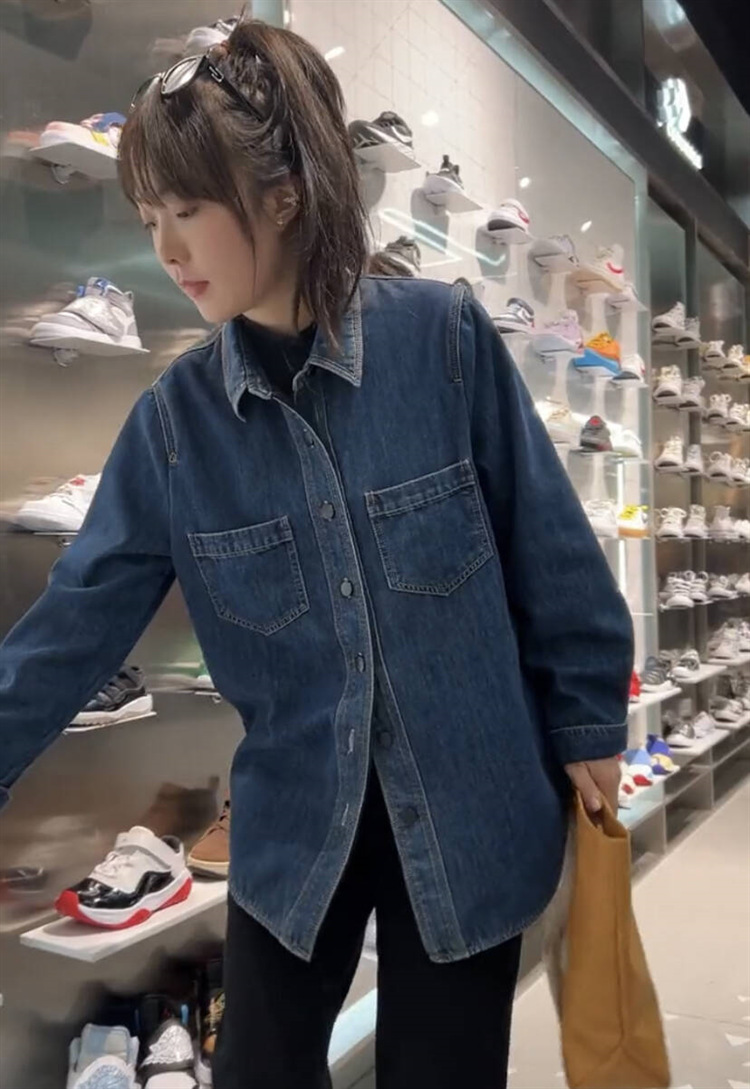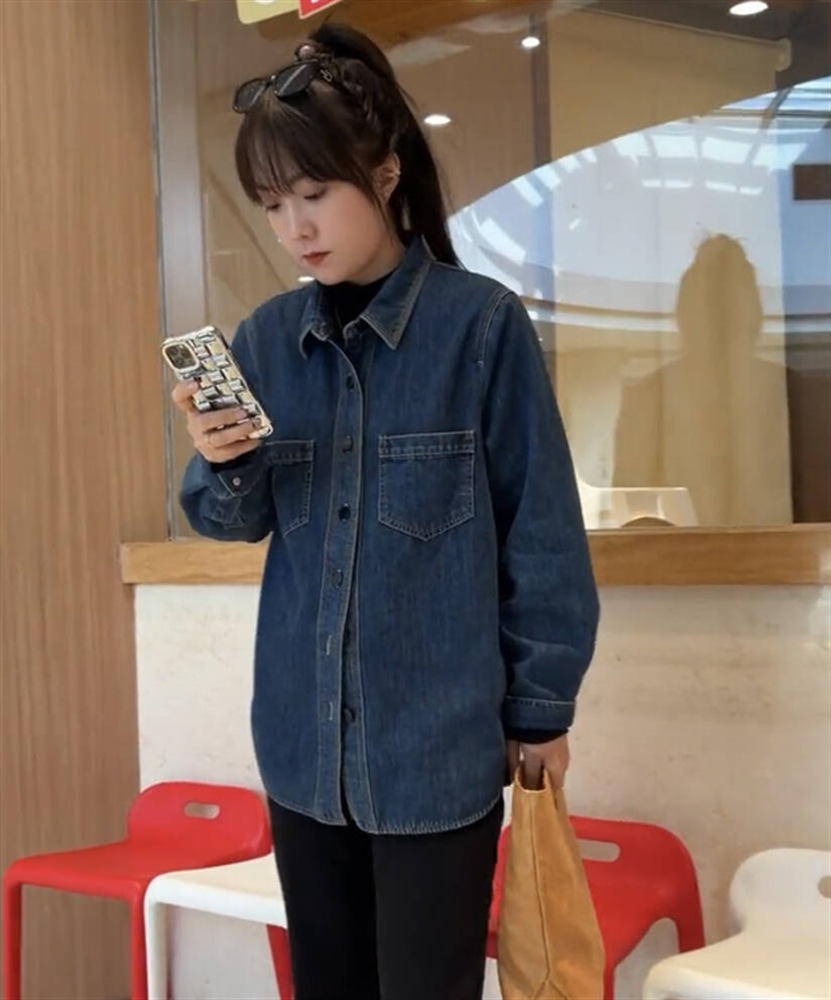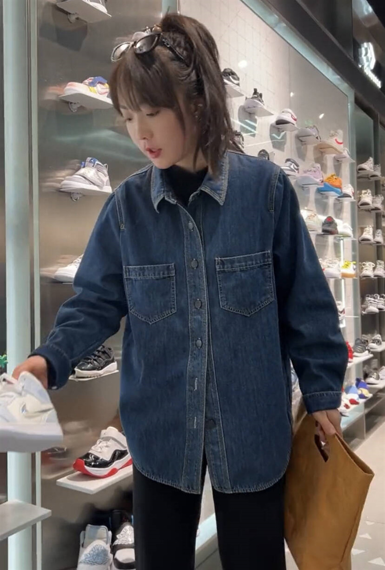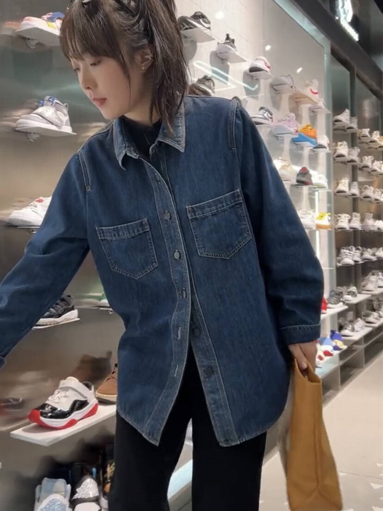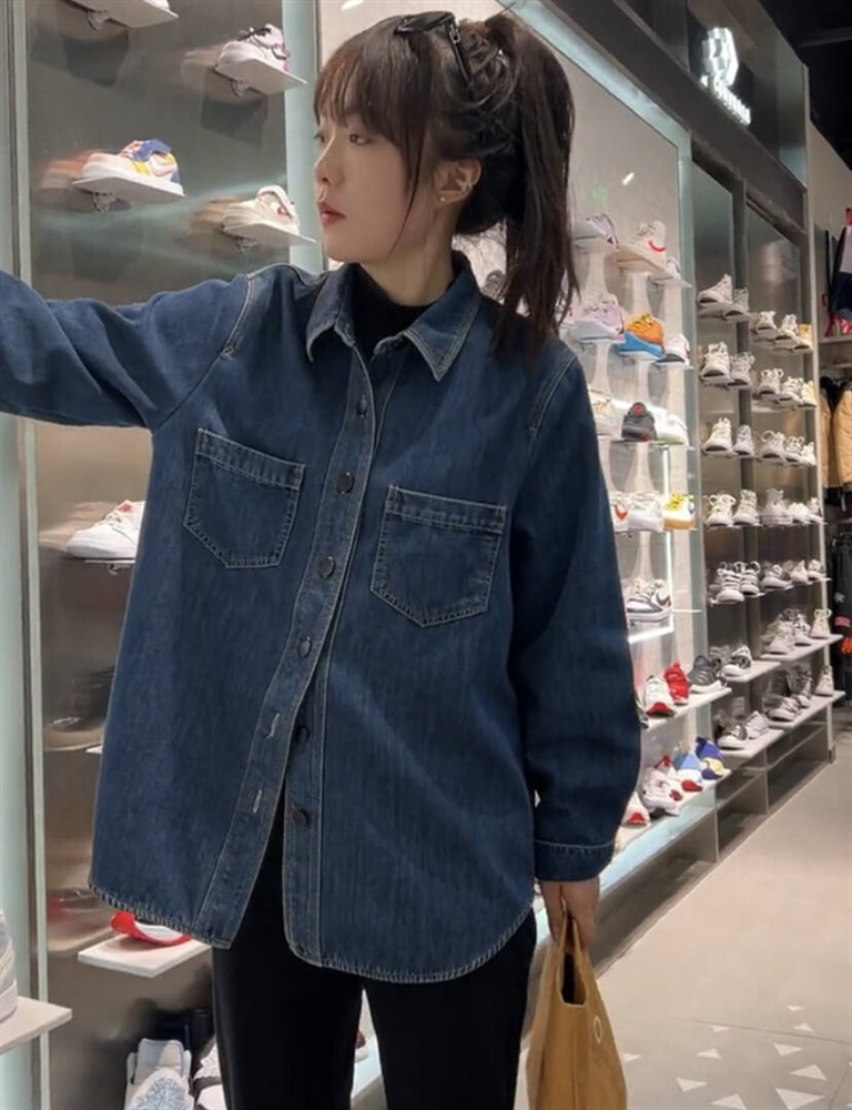여성용 데님 셔츠 긴팔 봄 여름 신상 패션 중간 길이 레이어드 루즈 캐주얼 이너 셔츠 자켓 스타일리시스토어 가기