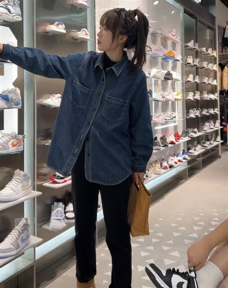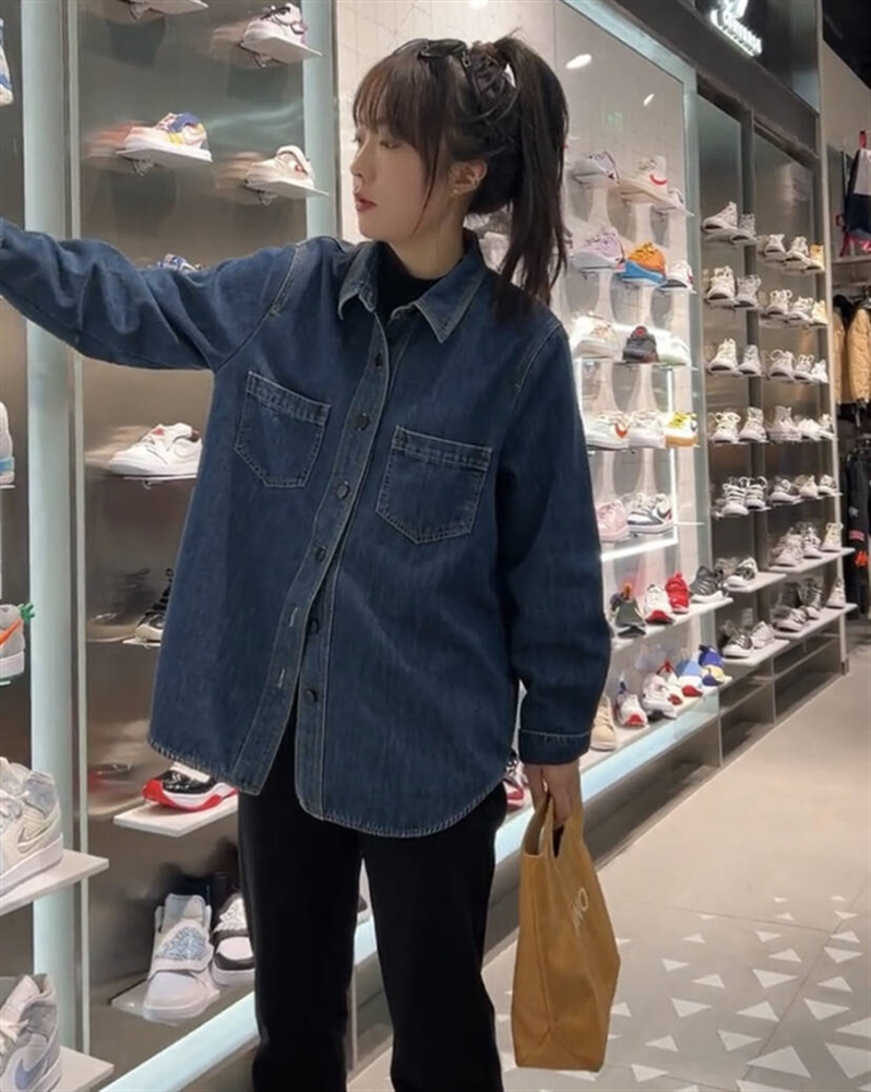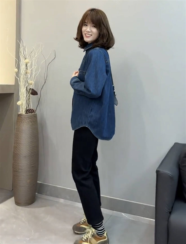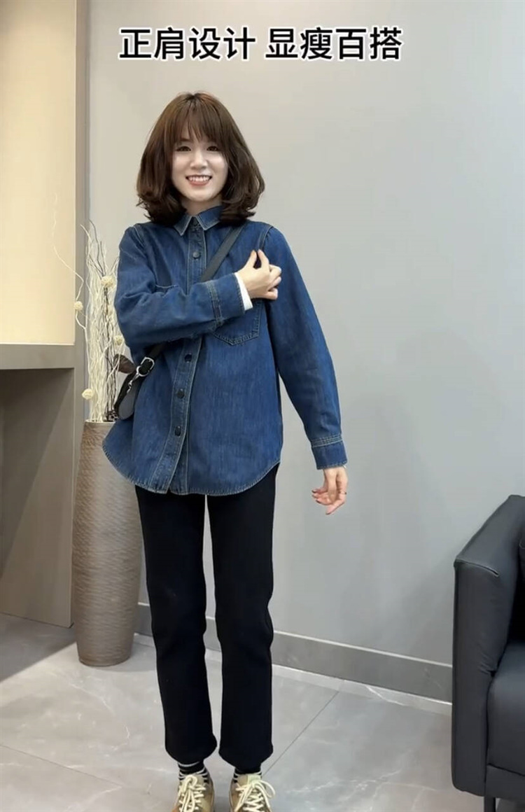 여성용 데님 셔츠 긴팔 봄 여름 신상 패션 중간 길이 레이어드 루즈 캐주얼 이너 셔츠 자켓 스타일리시스토어 가기