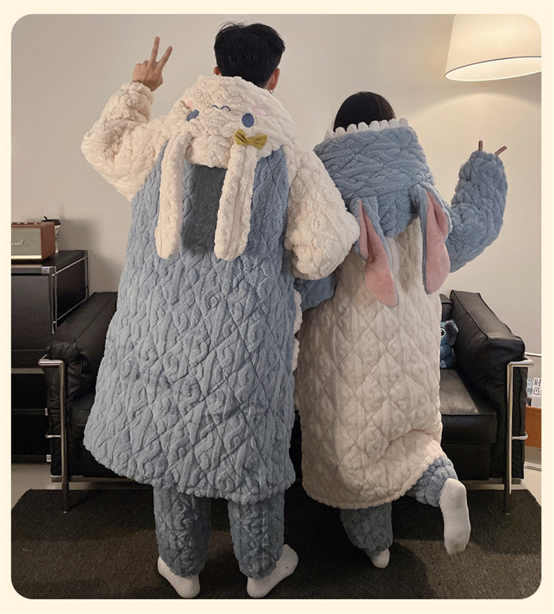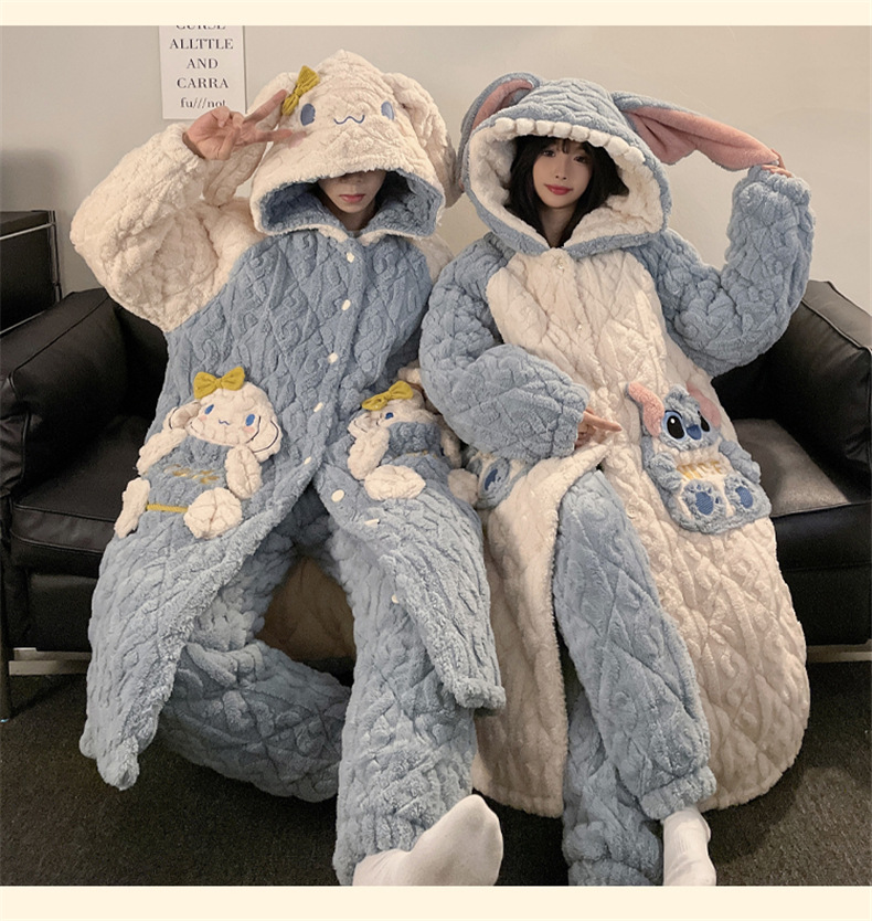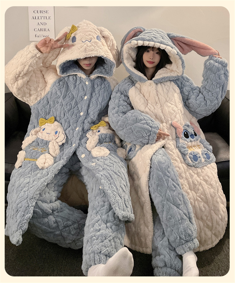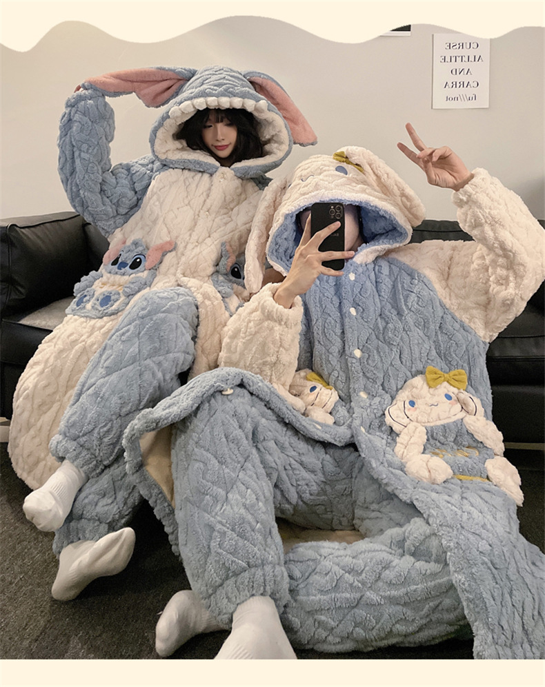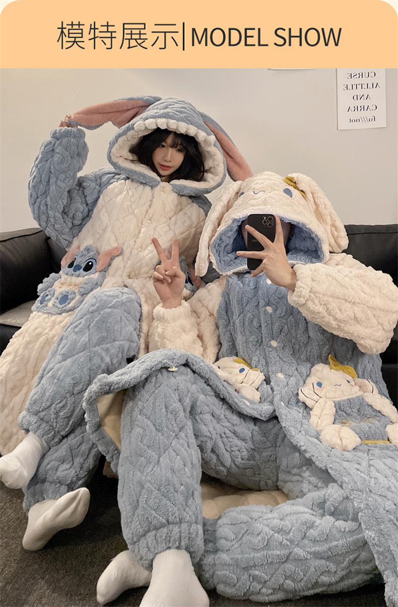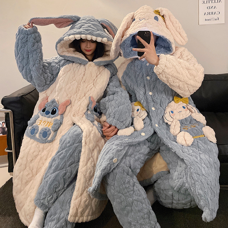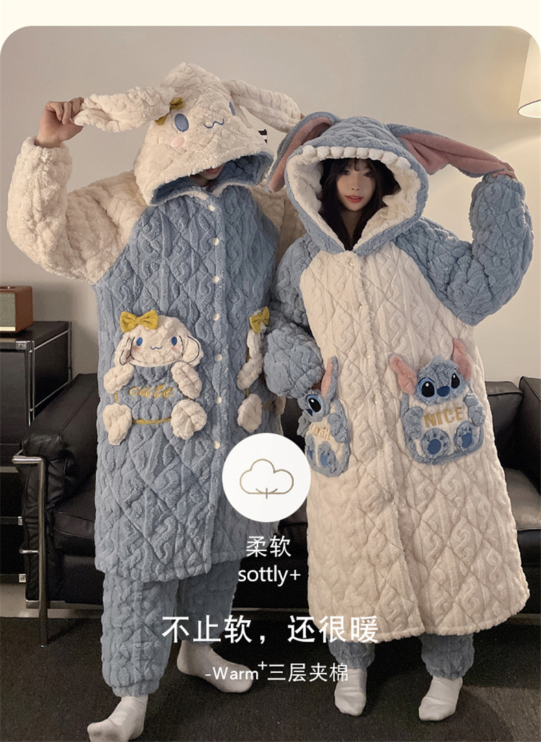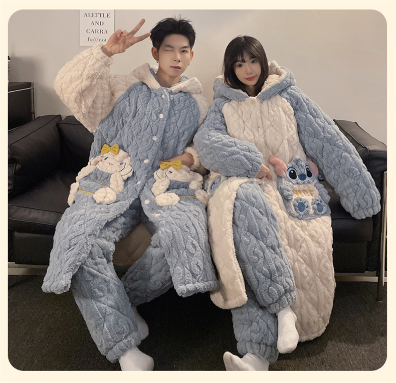 산호 양털 커플 파자마 여성의 겨울 두껍게 기모 3 층 면화 패딩 재킷 Yugui 개 잠옷 남성 홈웨어 겨울스토어 가기