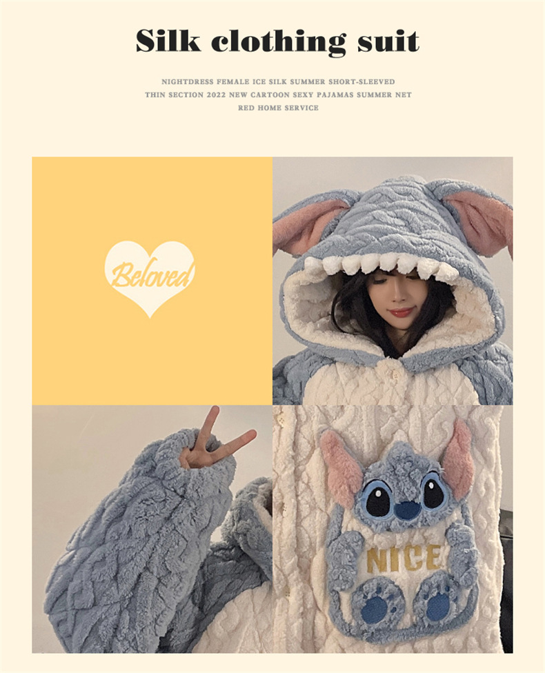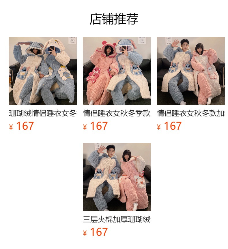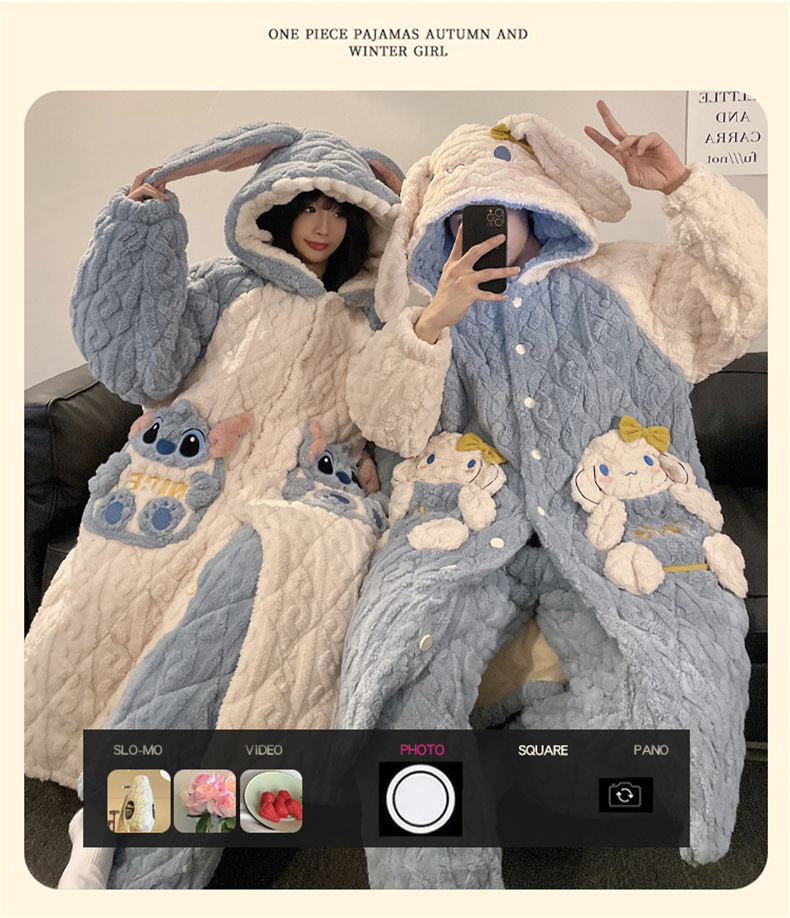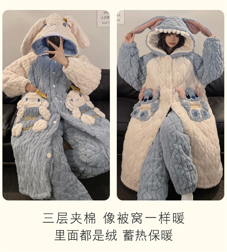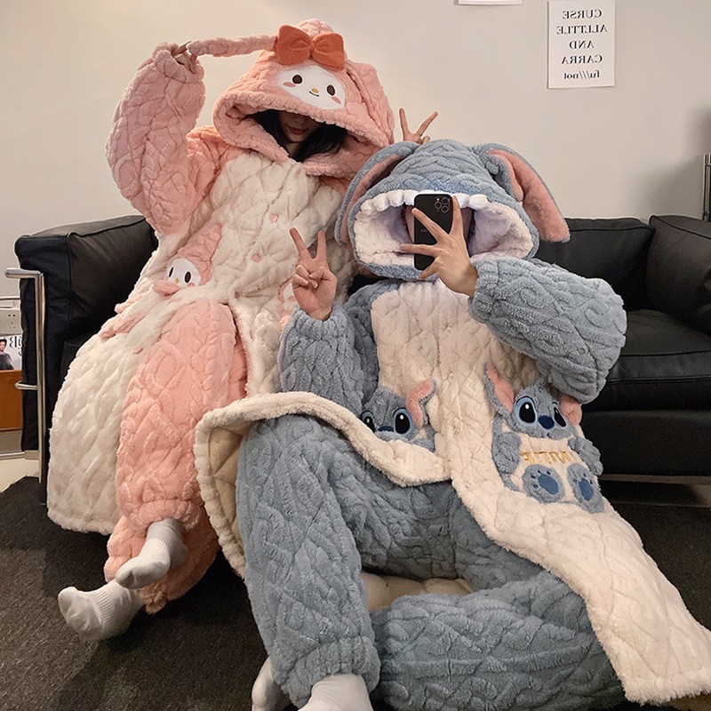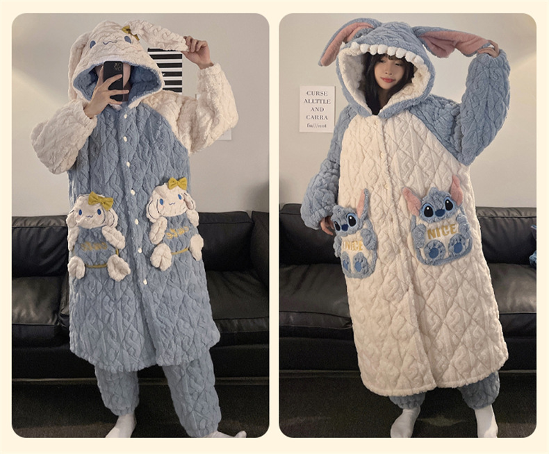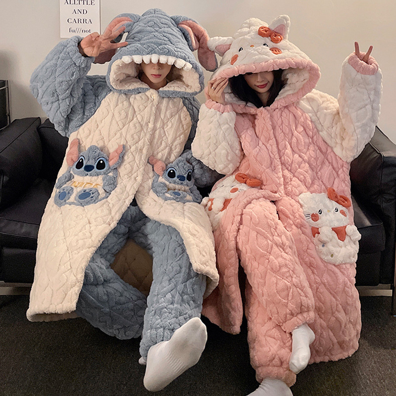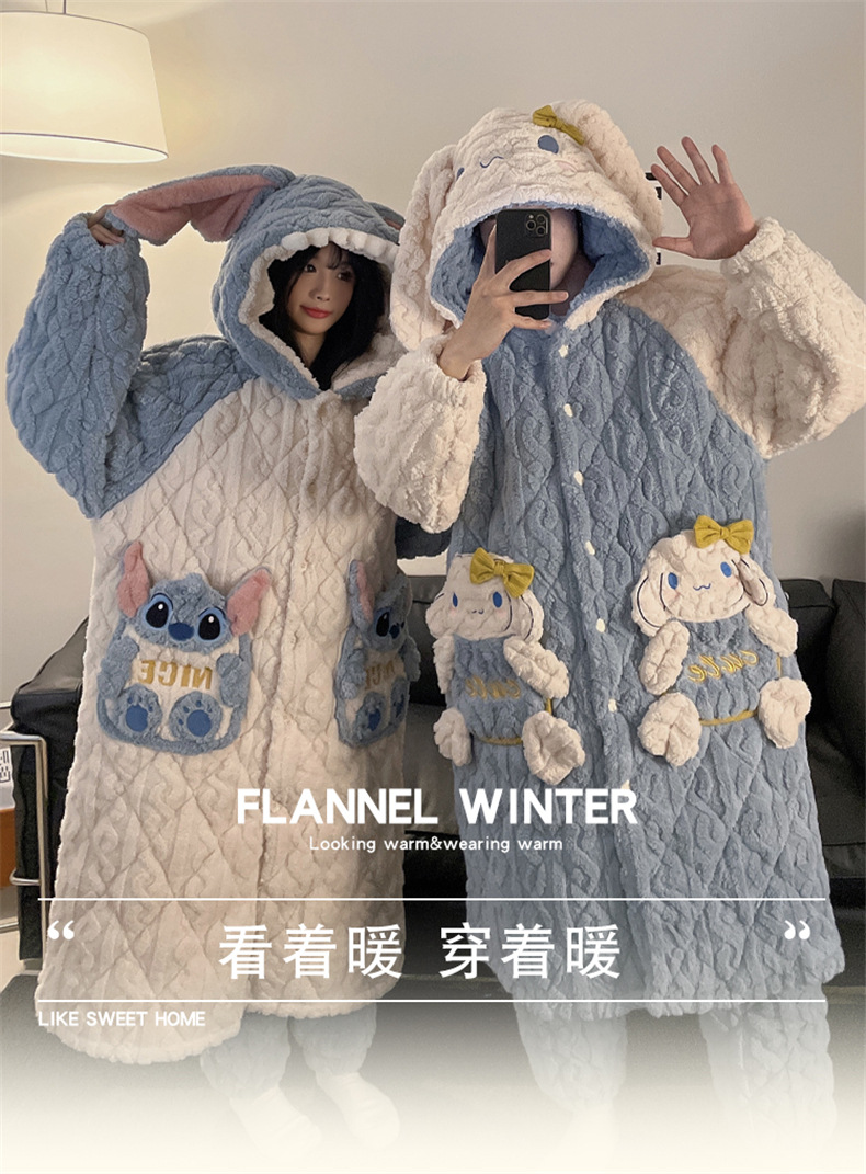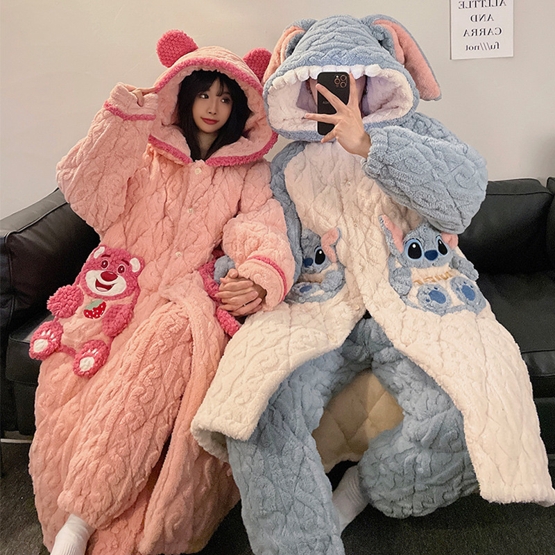 산호 양털 커플 파자마 여성의 겨울 두껍게 기모 3 층 면화 패딩 재킷 Yugui 개 잠옷 남성 홈웨어 겨울스토어 가기