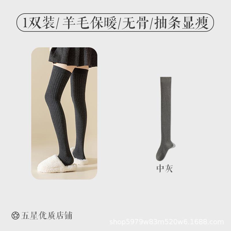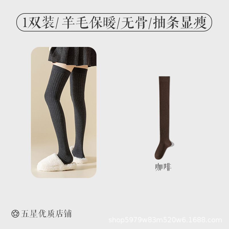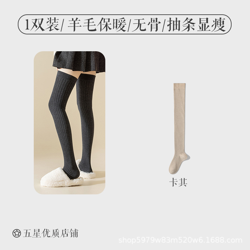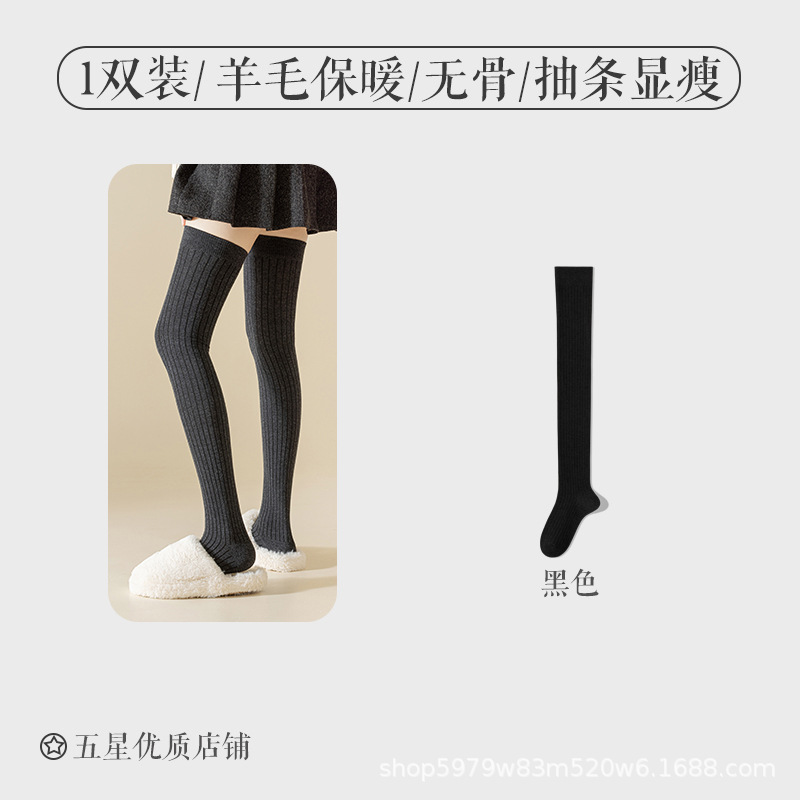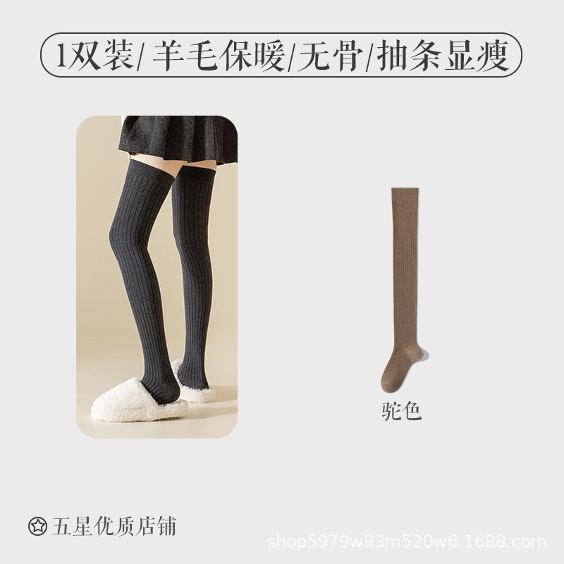 양모 따뜻한 무릎 위 양말 여성의 가을과 겨울 두꺼운 높은 양말 겨울 무릎 패드 긴 다리 허벅지 슬리밍 스타킹