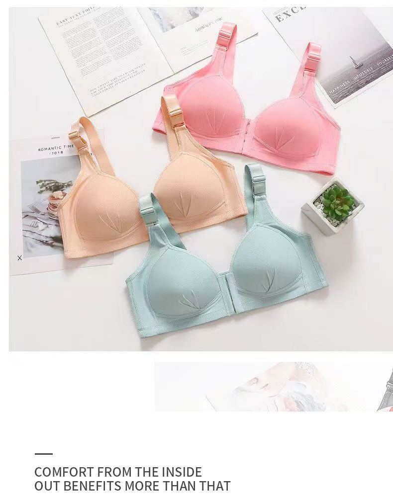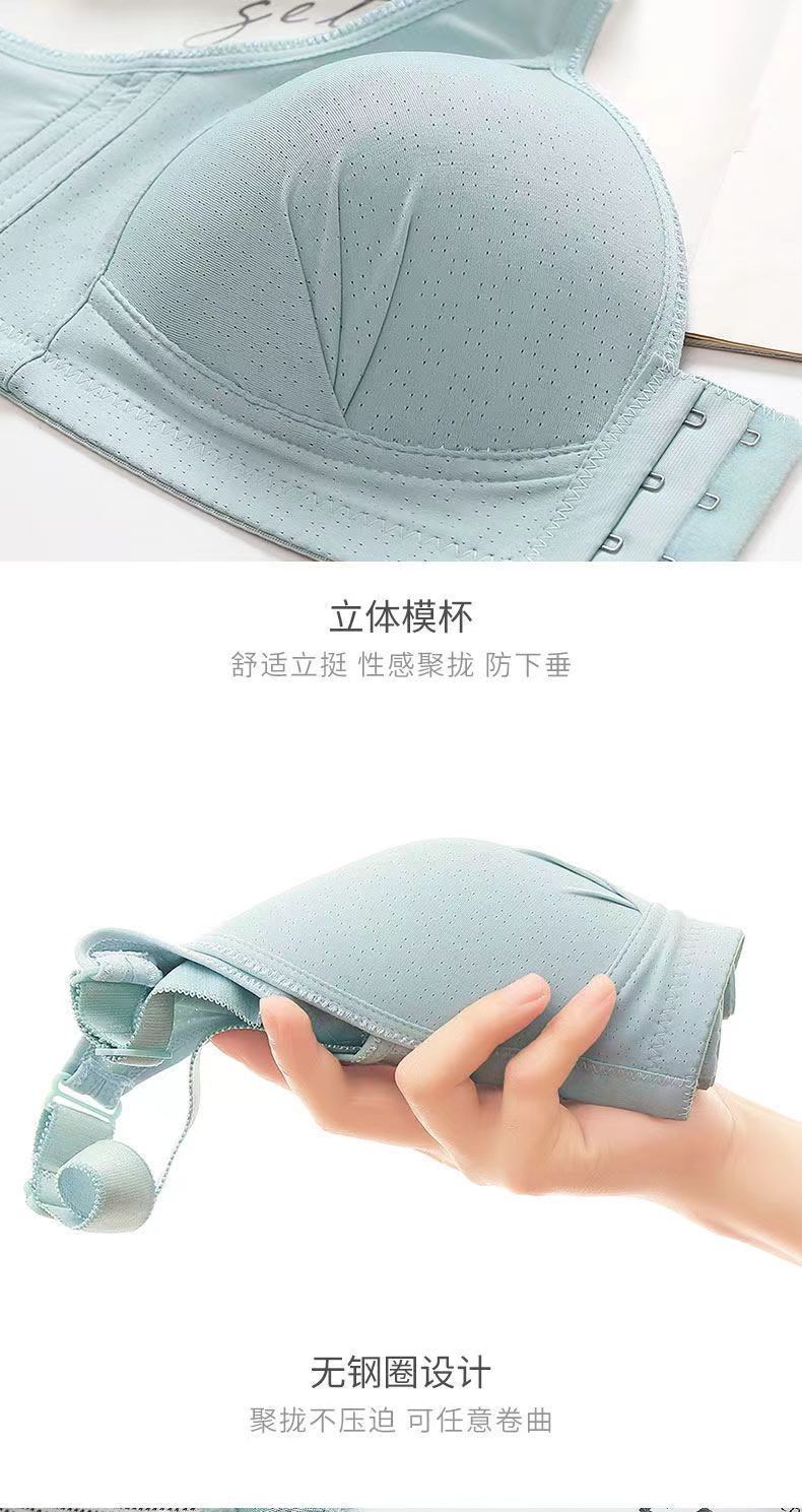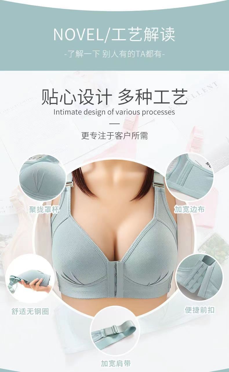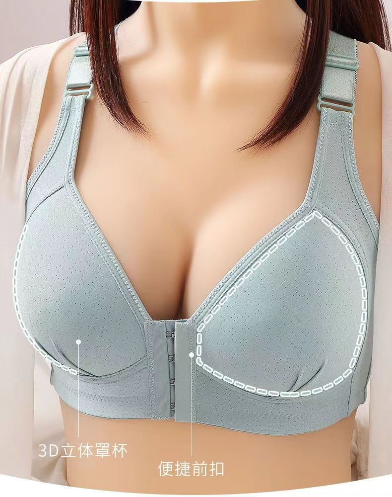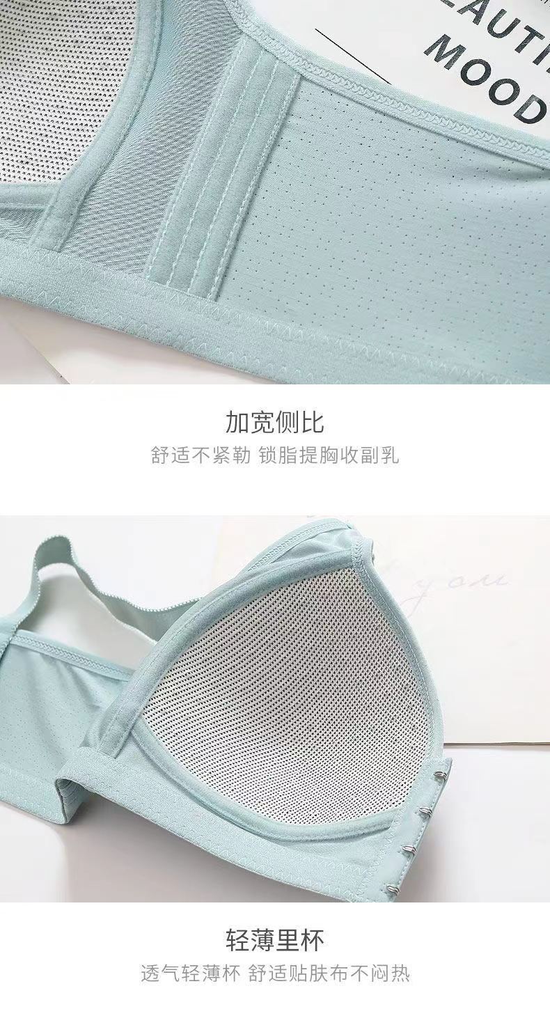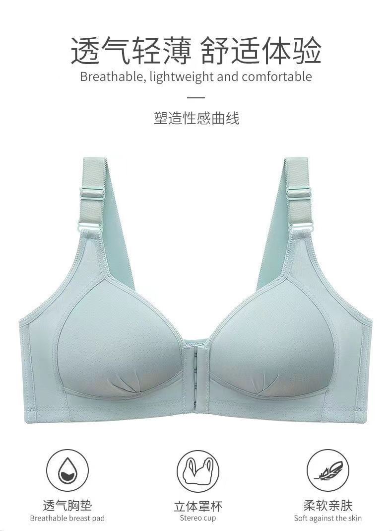 공장 직접 공급 액세서리 우유 비 강철 링 통기성 얇은 금형 컵 중년 및 노인 여성 앞 버클 브라