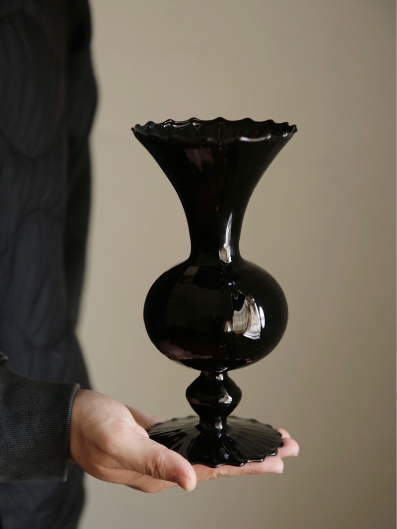 한국 스타일 빈티지 유리 꽃병 간단한 노르딕 블랙 꽃병 불규칙한 디자인 빛 럭셔리 홈 장식스토어 가기