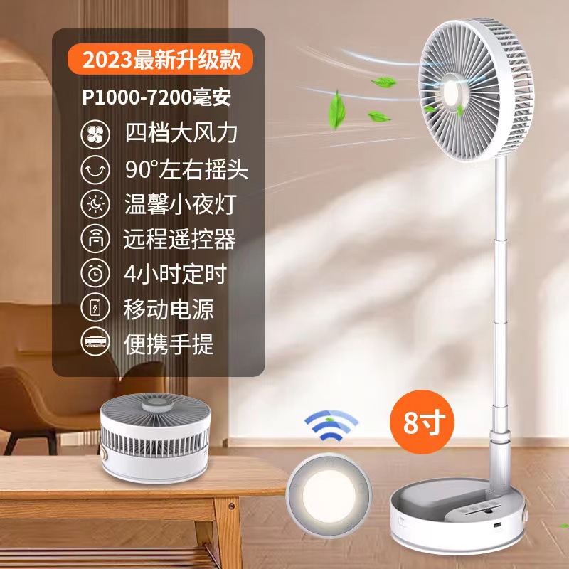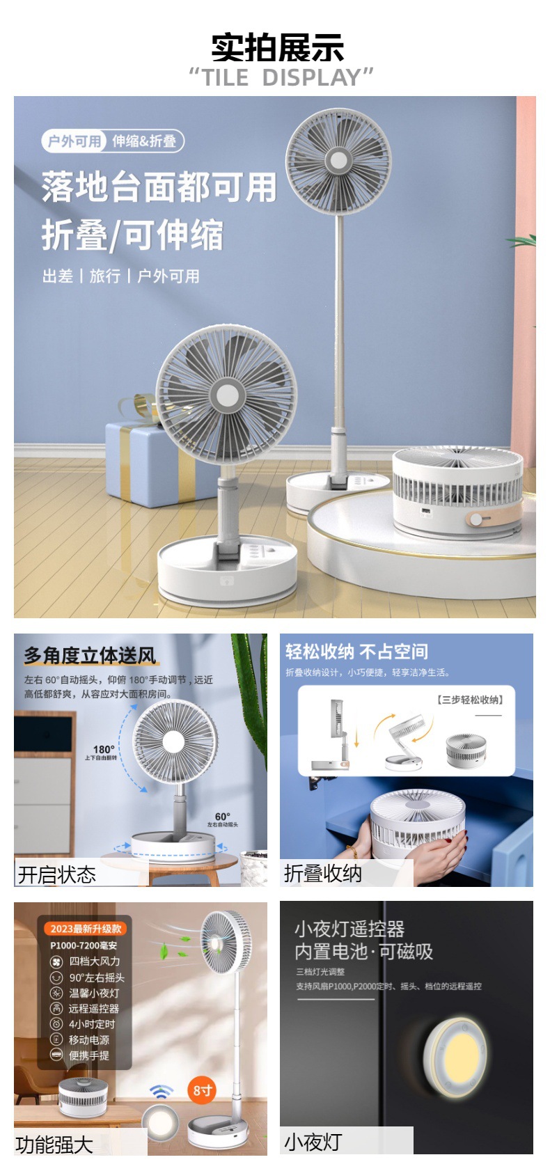 P1000 조명 기능이 있는 전기 선풍기, 탁상용 리모컨 선풍기, 회전형 타이머 기능, 접이식 휴대용 스탠드형 선풍기스토어 가기