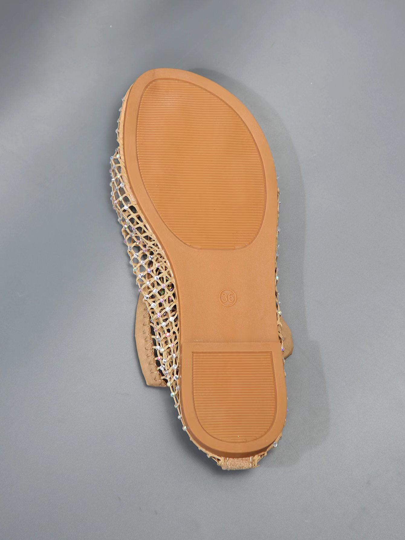 外贸夏季新款女士蕾丝网面鞋平底性感凉鞋网面水钻时尚性感凉鞋
