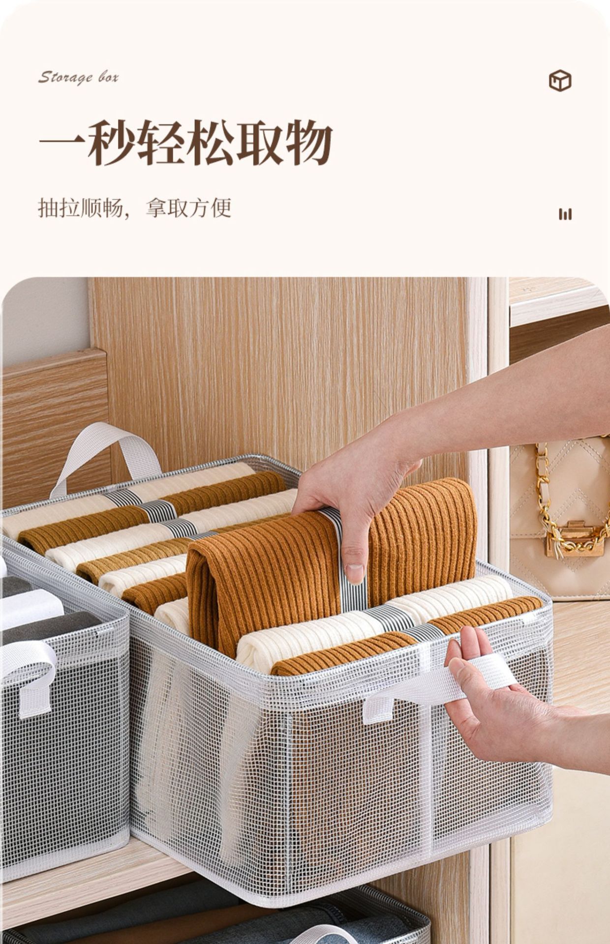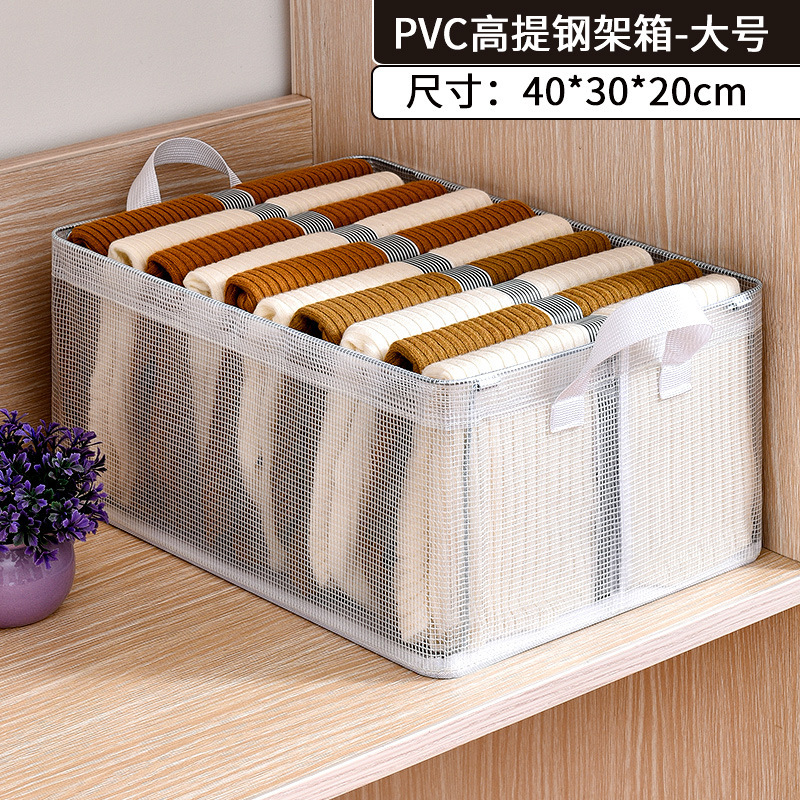 스틸 프레임 통기성 보관 상자 투명 메쉬 바지 옷 보관 상자 접이식 보관 바구니 교사스토어 가기