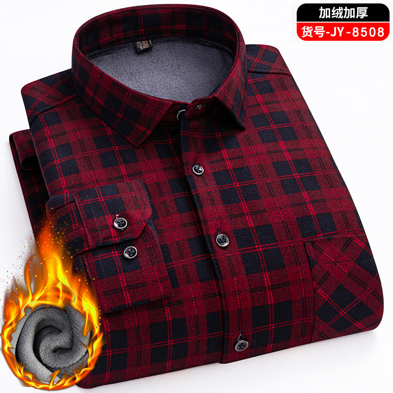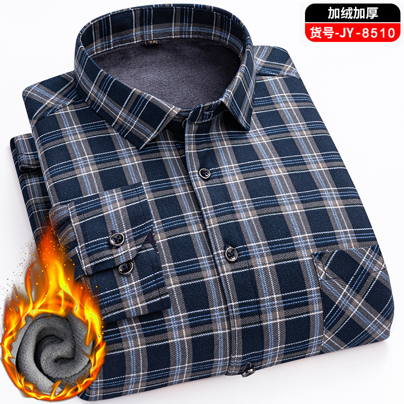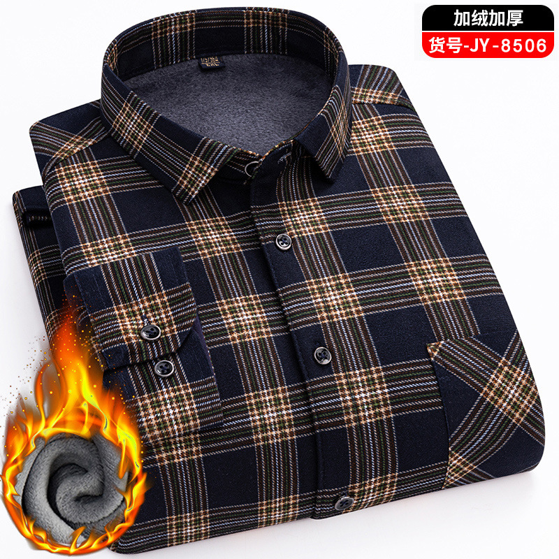 겨울 양면 벨벳 열 셔츠 남성용 기모 두꺼운 격자 무늬 셔츠 플러스 사이즈 중년 도매 옷스토어 가기