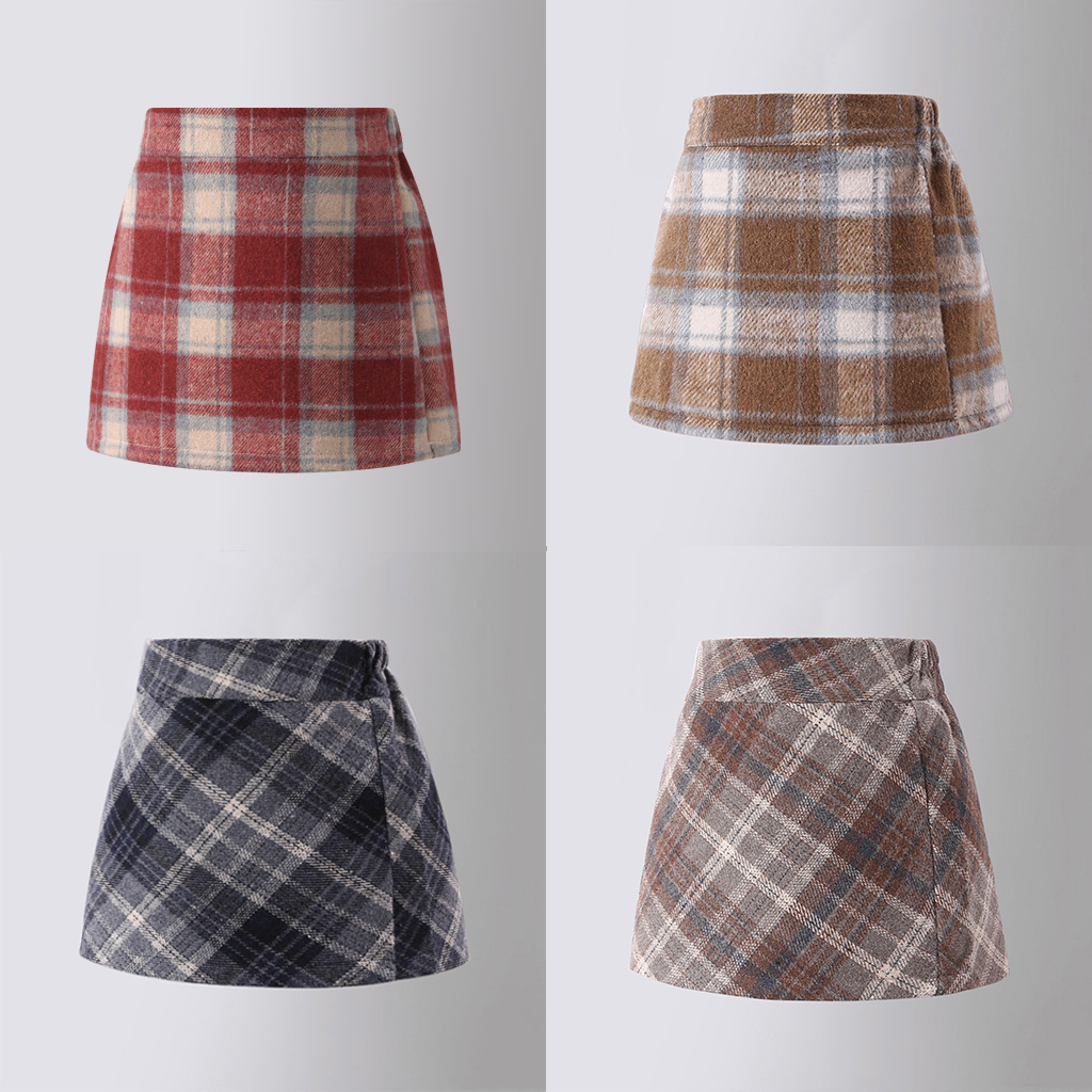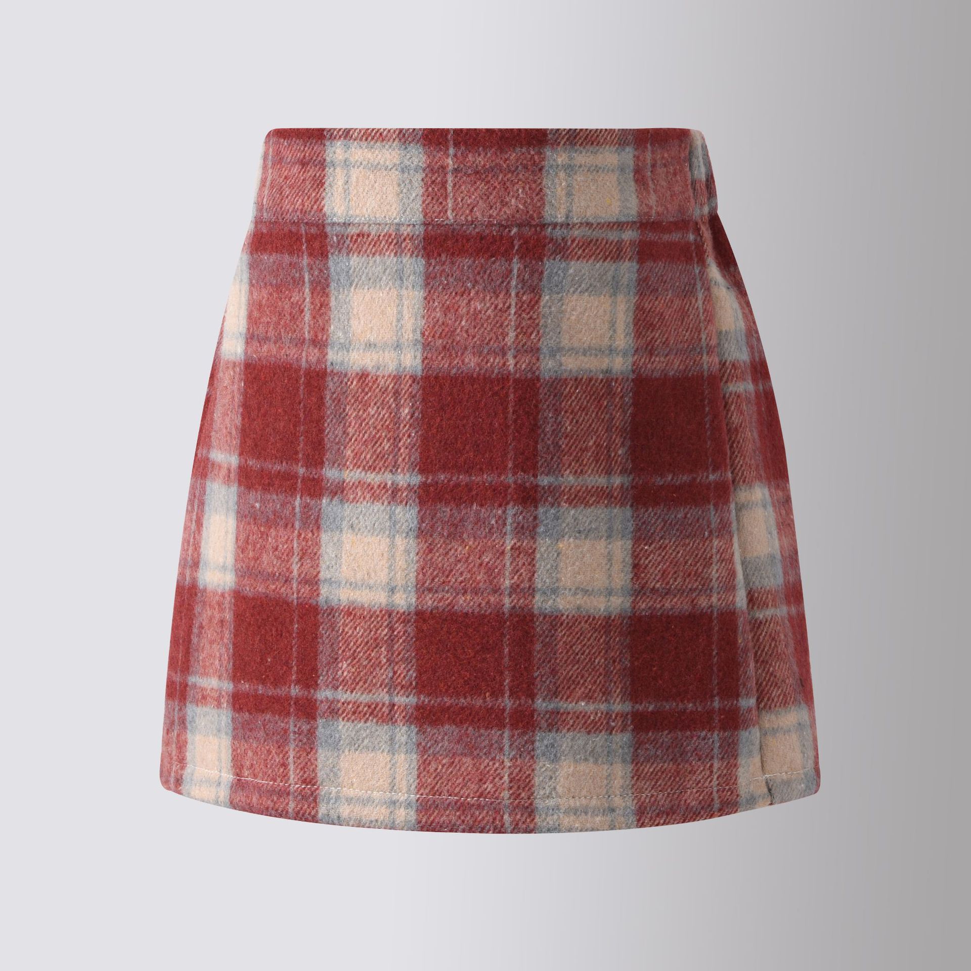 2025 여아 가을 겨울 레드 모직 체크 힙 스커트 한국 스타일 아동 패션 스커트 여아 하이웨이스트 숏 스커트스토어 가기