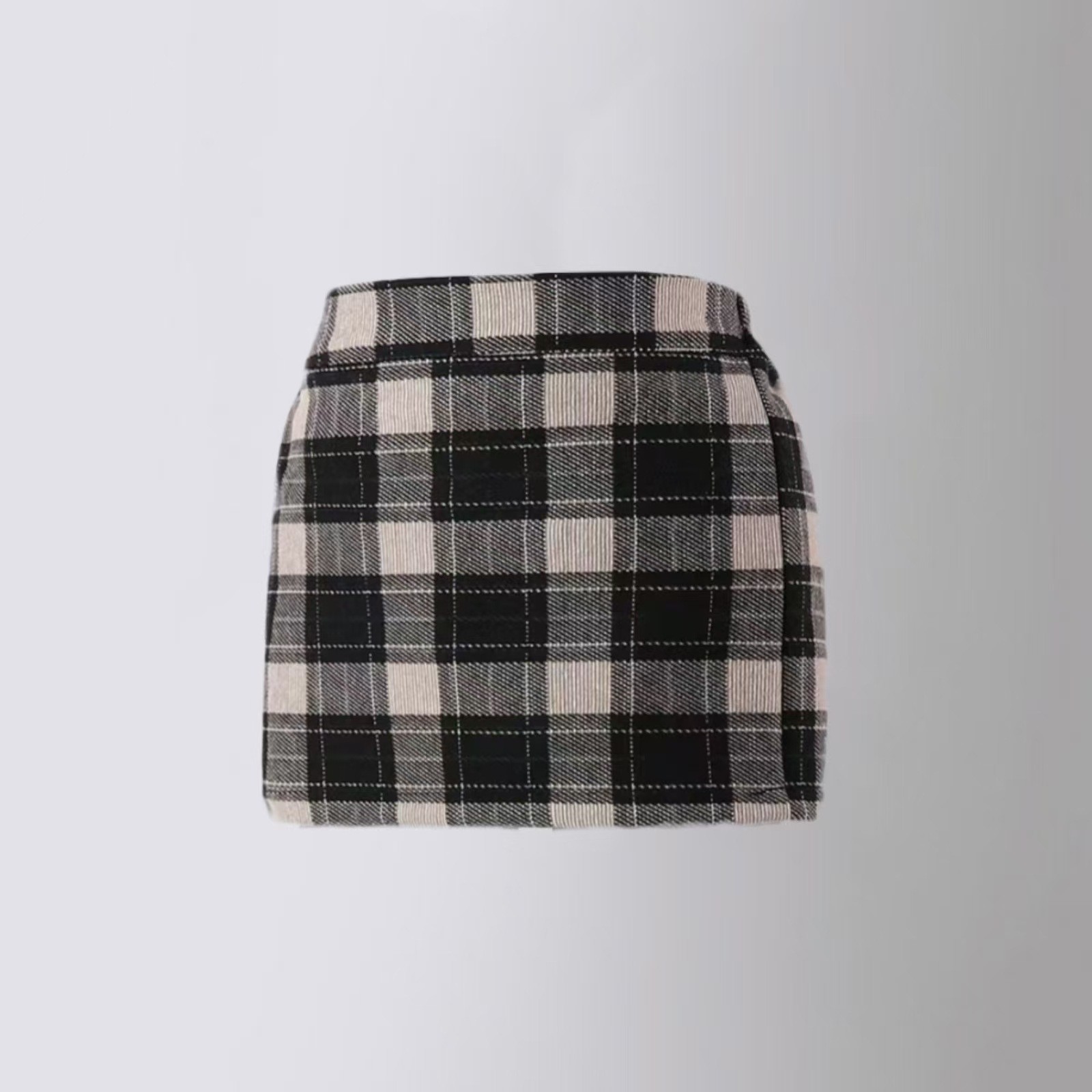 • 2388 체크무늬 모직 힙스커트 [레드커피그리드]