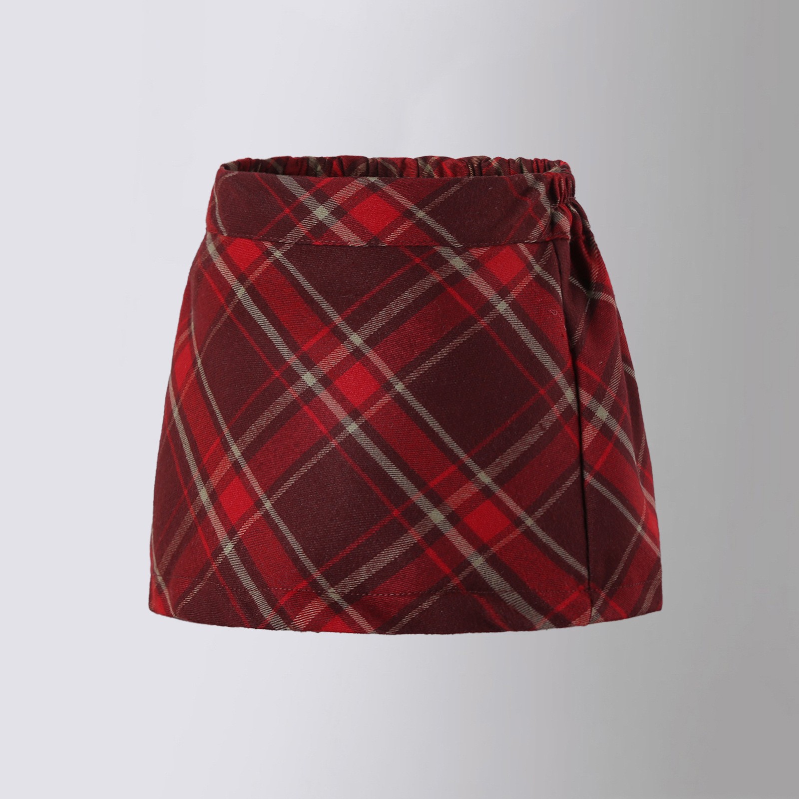 2025 여아 가을 겨울 레드 모직 체크 힙 스커트 한국 스타일 아동 패션 스커트 여아 하이웨이스트 숏 스커트