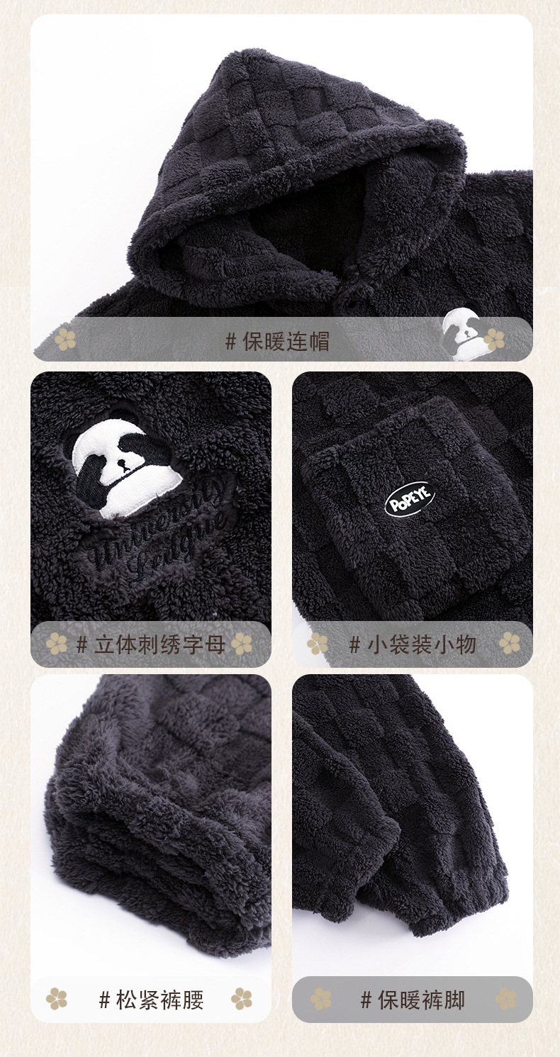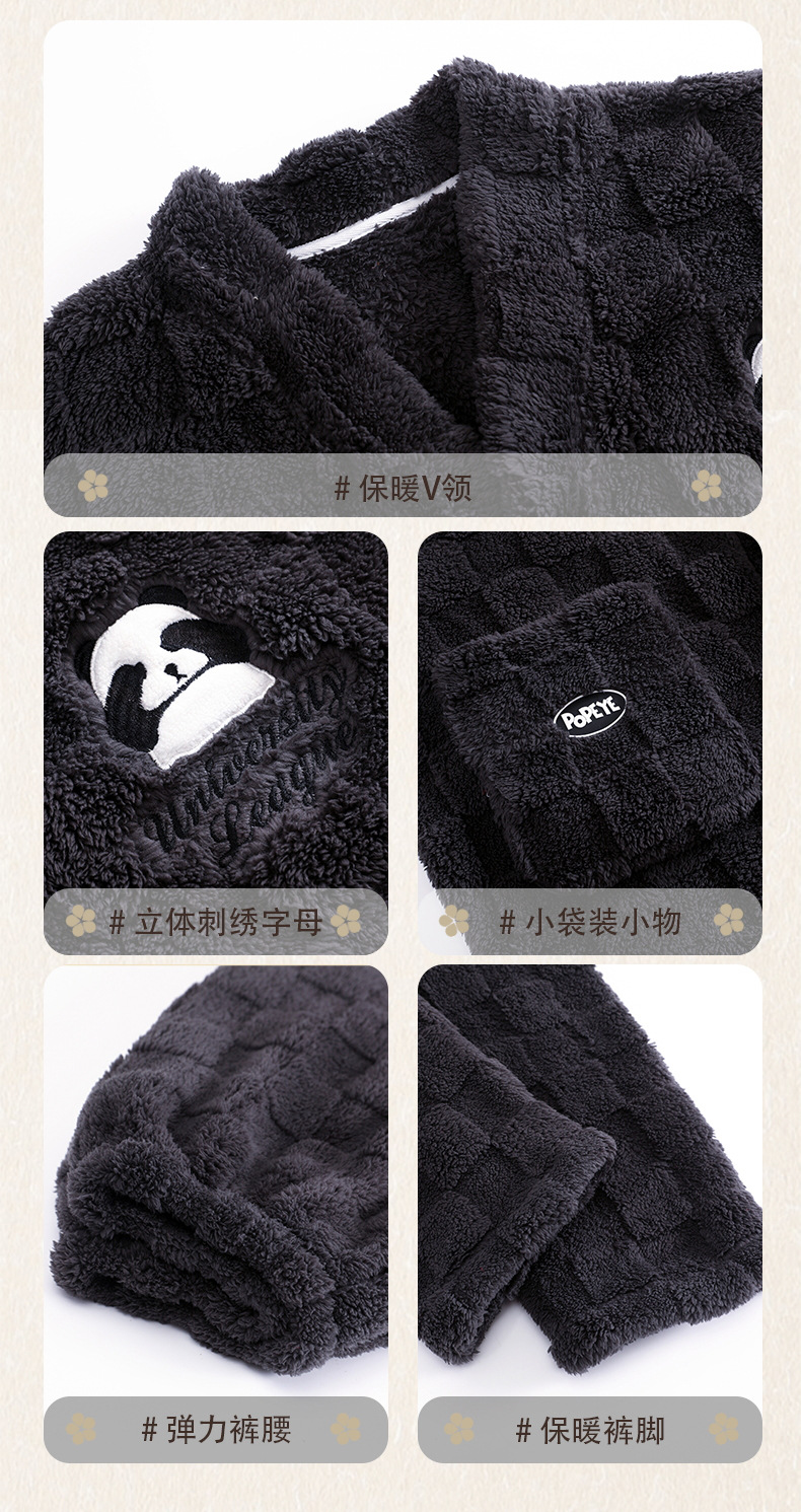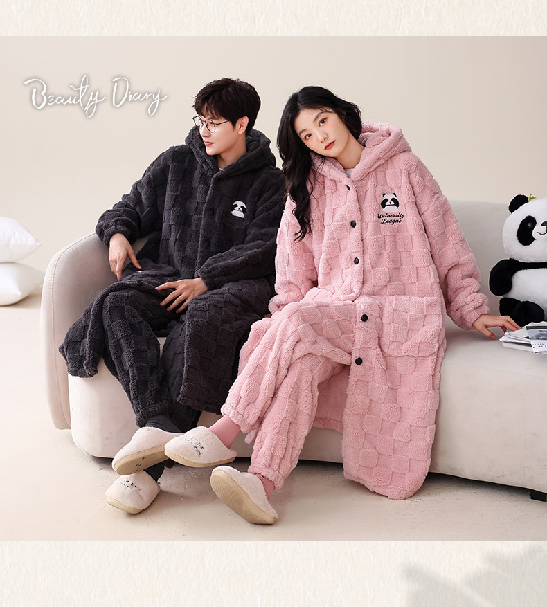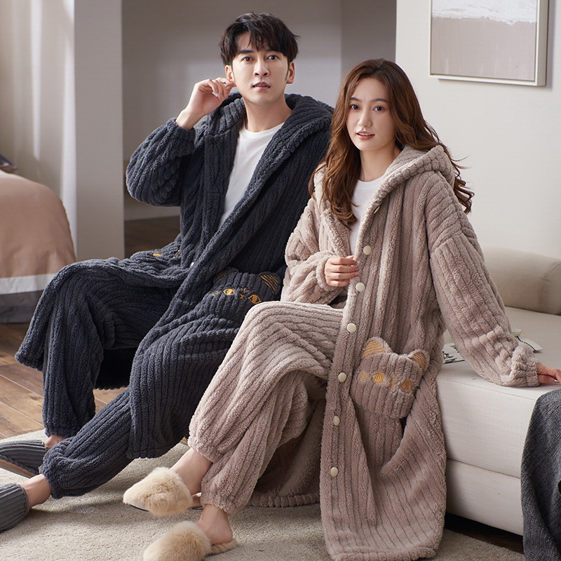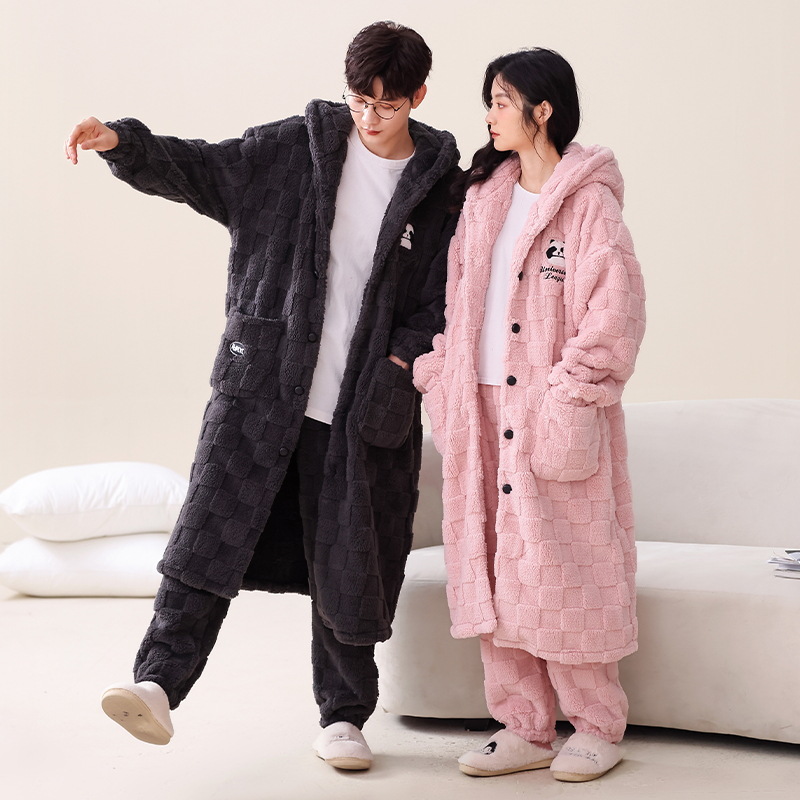 겨울 두꺼운 커플 잠옷 여성의 작은 공룡 만화 남성과 여성의 홈 착용 플란넬 파자마 따뜻한 세트스토어 가기