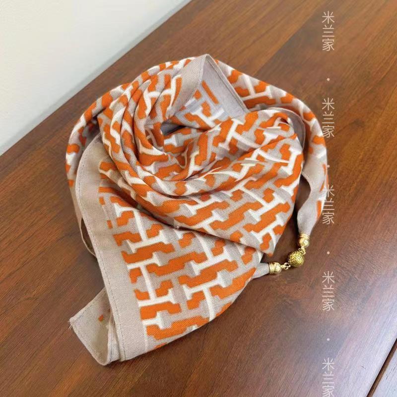 클래식 작은 골든 볼 마그네틱 버클 고급 실크 스카프 65*65 스퀘어 스카프 가을과 겨울 따뜻한 삼각형 스카프 밀라노 홈스토어 가기