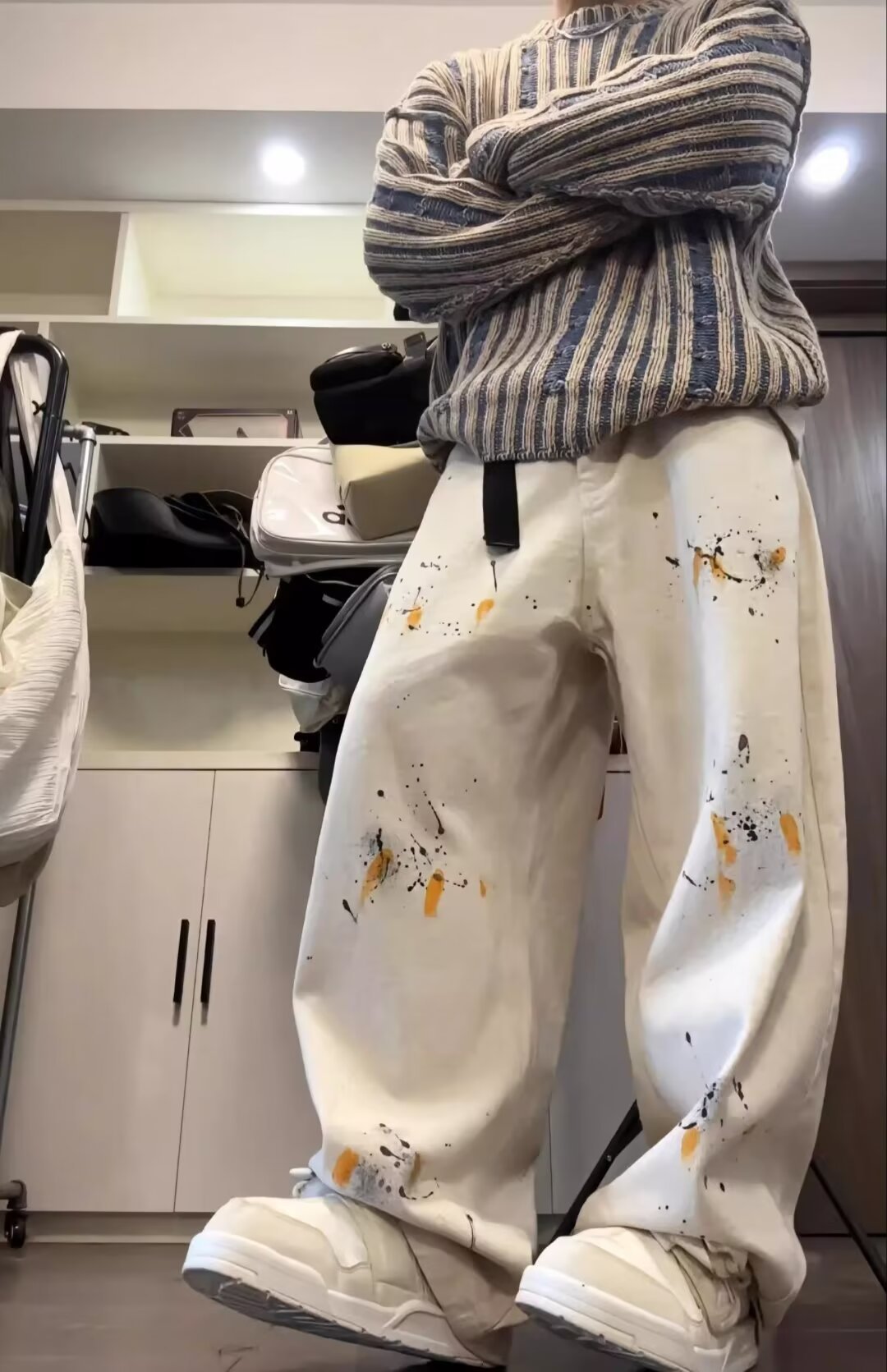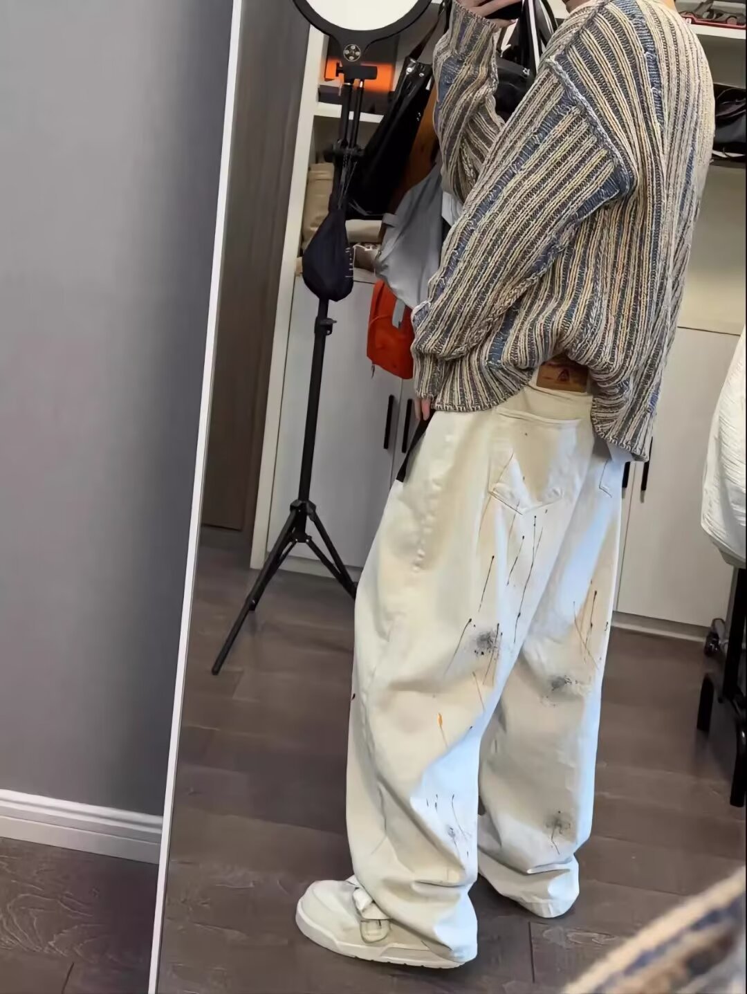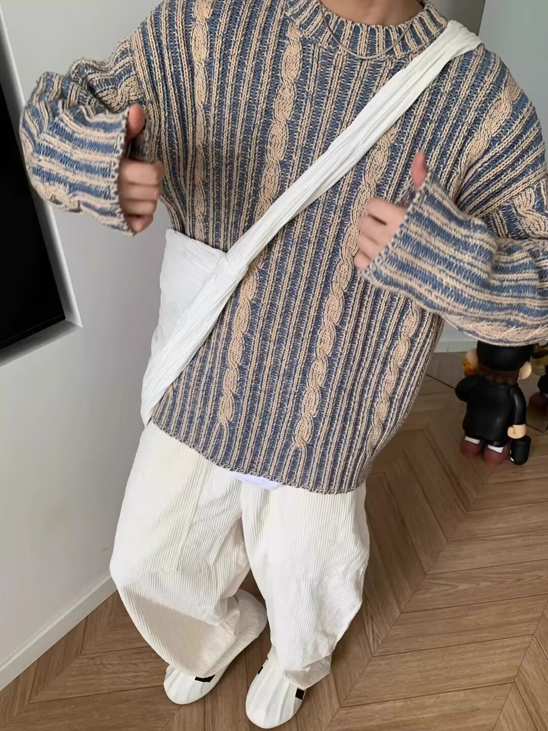2024 새 소년 고급 스웨터 가을과 겨울 한국식 복고풍 대비 컬러 라운드 넥 캐주얼 스웨터스토어 가기