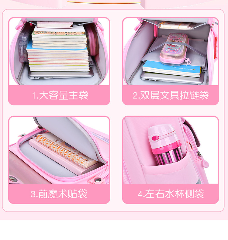 새로운 초등학교 학생 책가방 남학생과 여학생 1 ~ 6 학년 대용량 6-14 세 귀여운 배낭 대용량