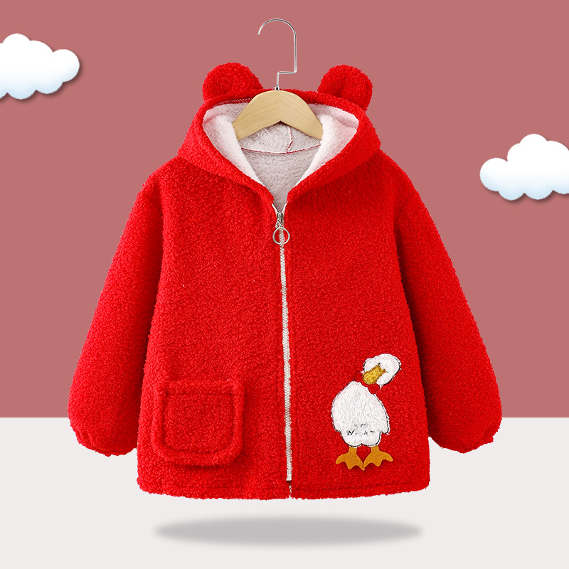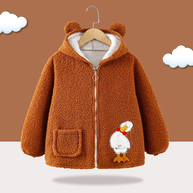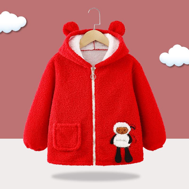 아기 소년 겨울 기모 귀여운 봉제 코트 아기 소녀 후드 기모 겨울 새로운면 코트 탑 코트