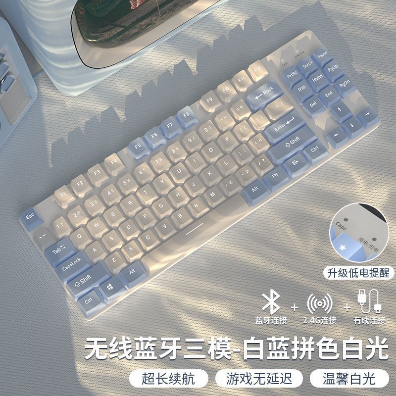 • 87 키 화이트 블루 컬러 매칭 화이트 라이트 [2.4g + 블루투스 + 유선] 싱글 키보드