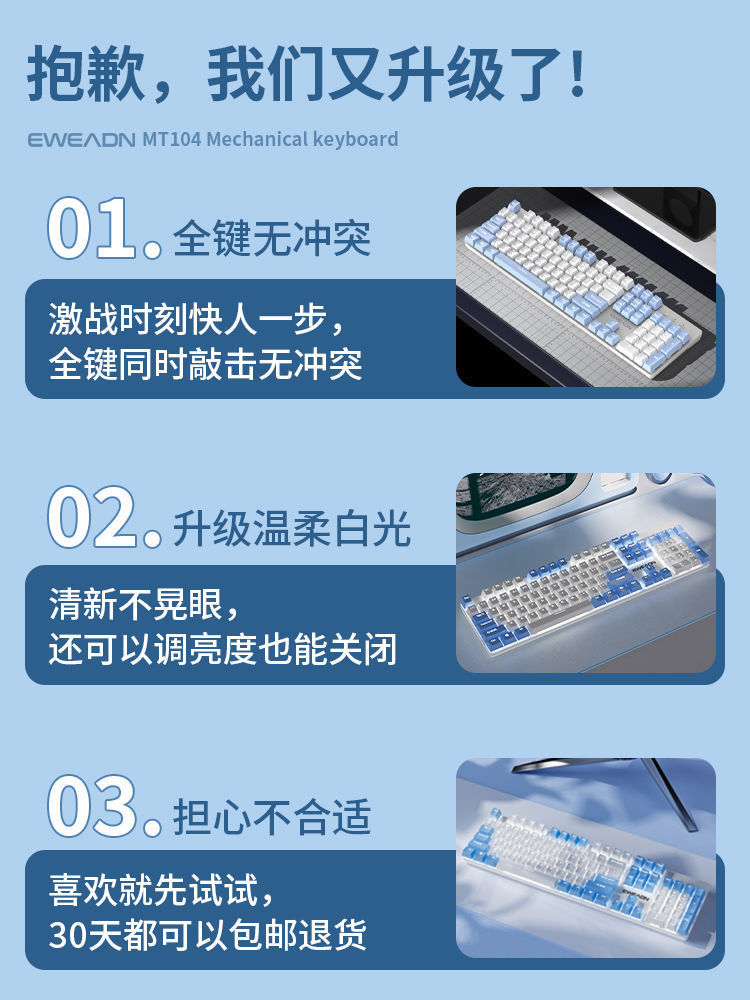 • 104 키 화이트 블루 컬러 매칭 화이트 라이트 [2.4g + 블루투스 + 유선] 싱글 키보드