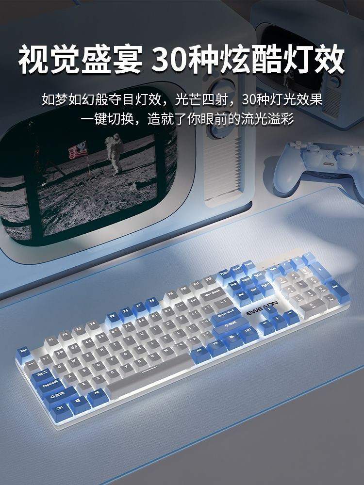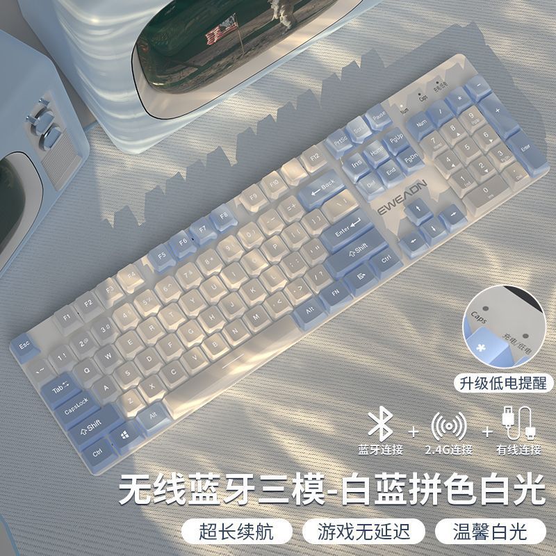 • 104 키 화이트 블루 컬러 매칭 화이트 라이트 [2.4g + 블루투스 + 유선] 키보드 및 마우스 세트
