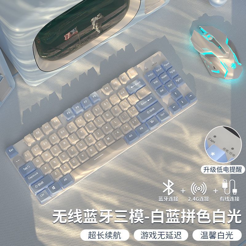 • 87 키 화이트 블루 컬러 매칭 화이트 라이트 [2.4g + 블루투스 + 유선] 키보드 및 마우스 세트