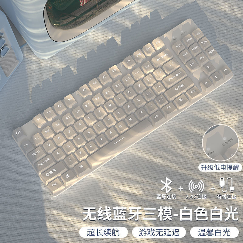 • 87 키 화이트 화이트 라이트 [2.4g + 블루투스 + 유선] 싱글 키보드