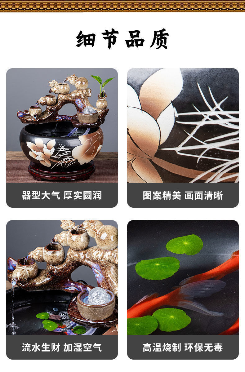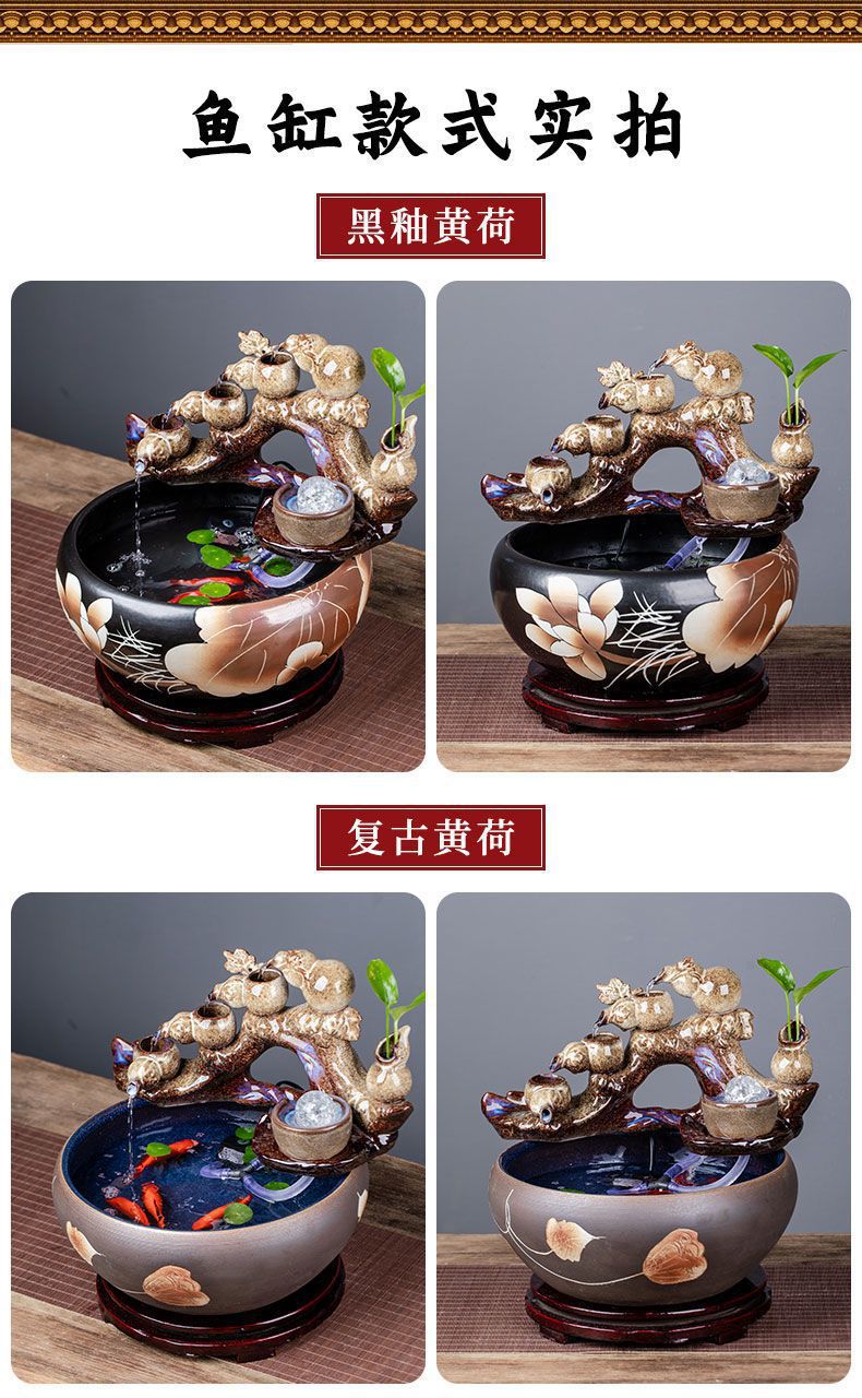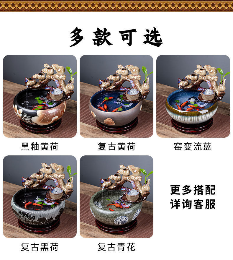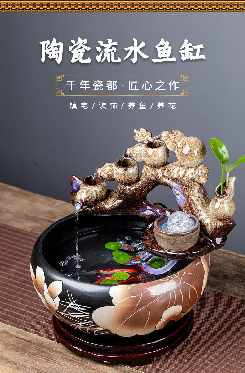 Jingdezhen 세라믹 물고기 탱크 가정용 물 분수 작은 황금 물고기 탱크 큰 물고기 냄비 장식 거실 가습 풍경스토어 가기