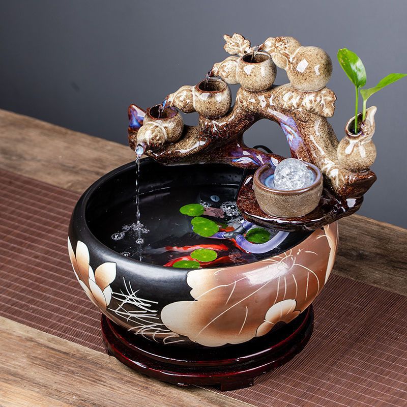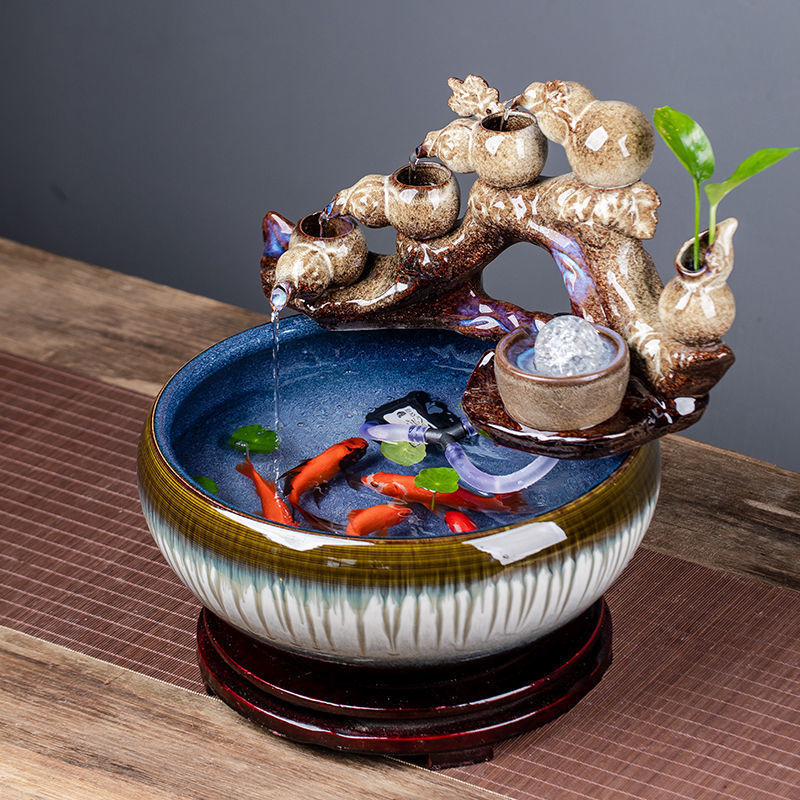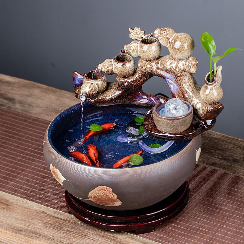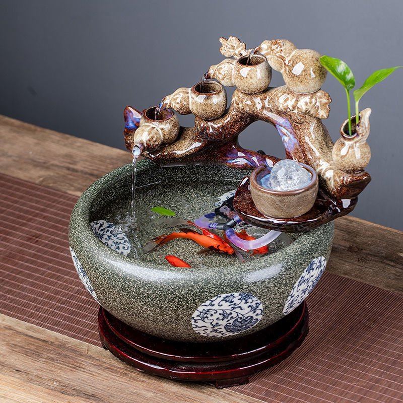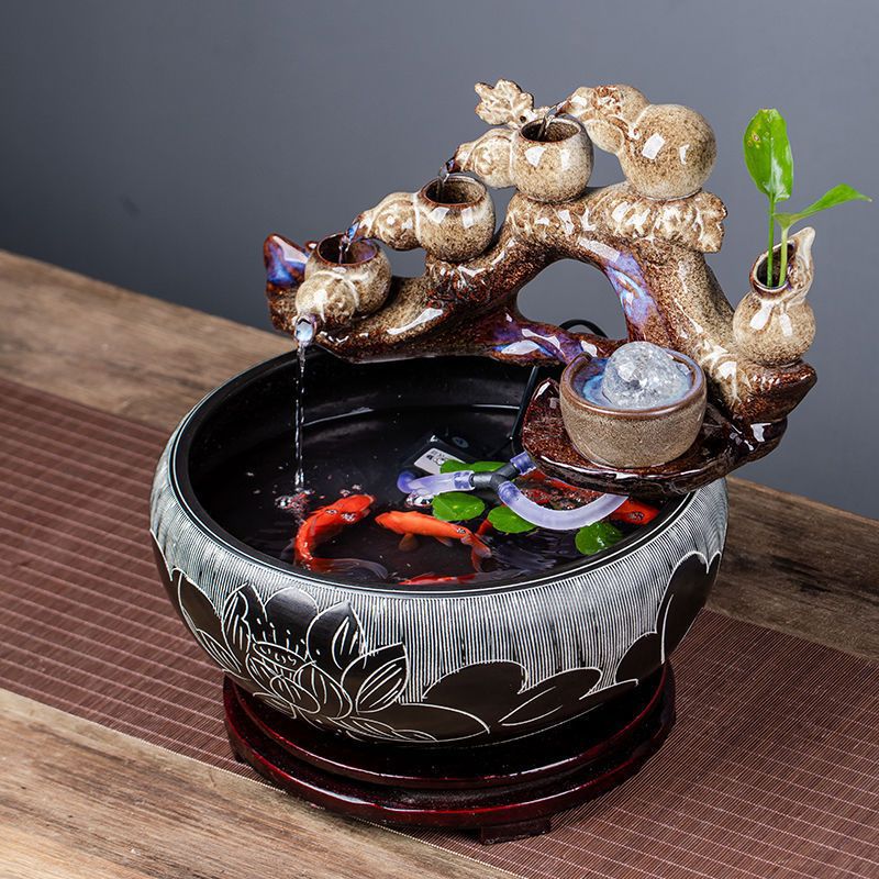 Jingdezhen 세라믹 물고기 탱크 가정용 물 분수 작은 황금 물고기 탱크 큰 물고기 냄비 장식 거실 가습 풍경스토어 가기