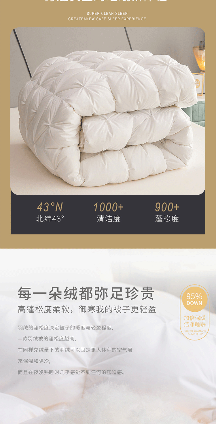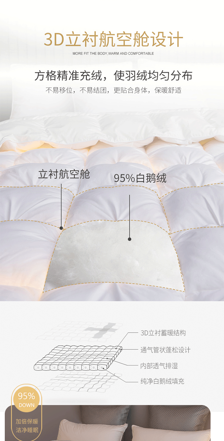 希尔顿羽绒被95白鹅绒冬被五星级酒店被子春秋被加厚保暖双人被芯