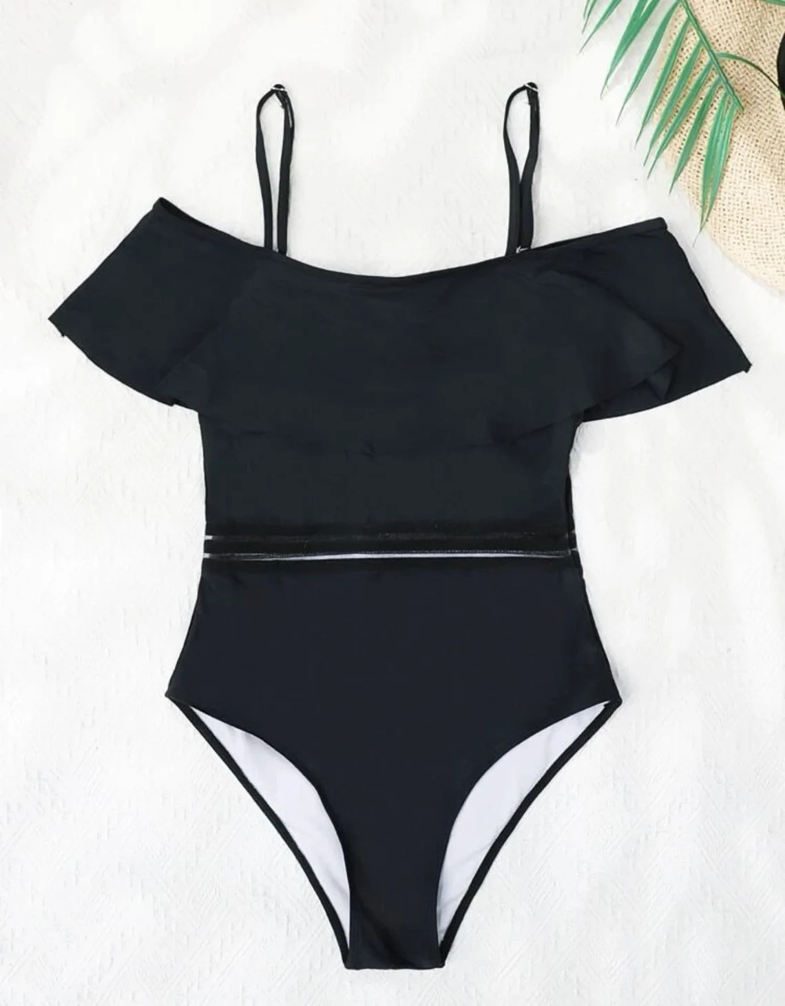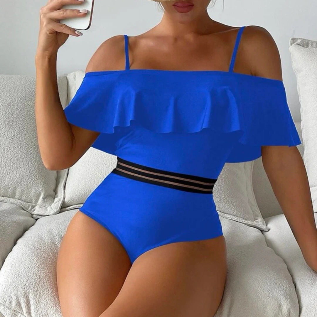 유럽과 미국의 국경을 넘는 새로운 대외 무역 여성 원피스 수영복 단색 스티칭 섹시한 연꽃 잎 어깨 수영복 비키니스토어 가기