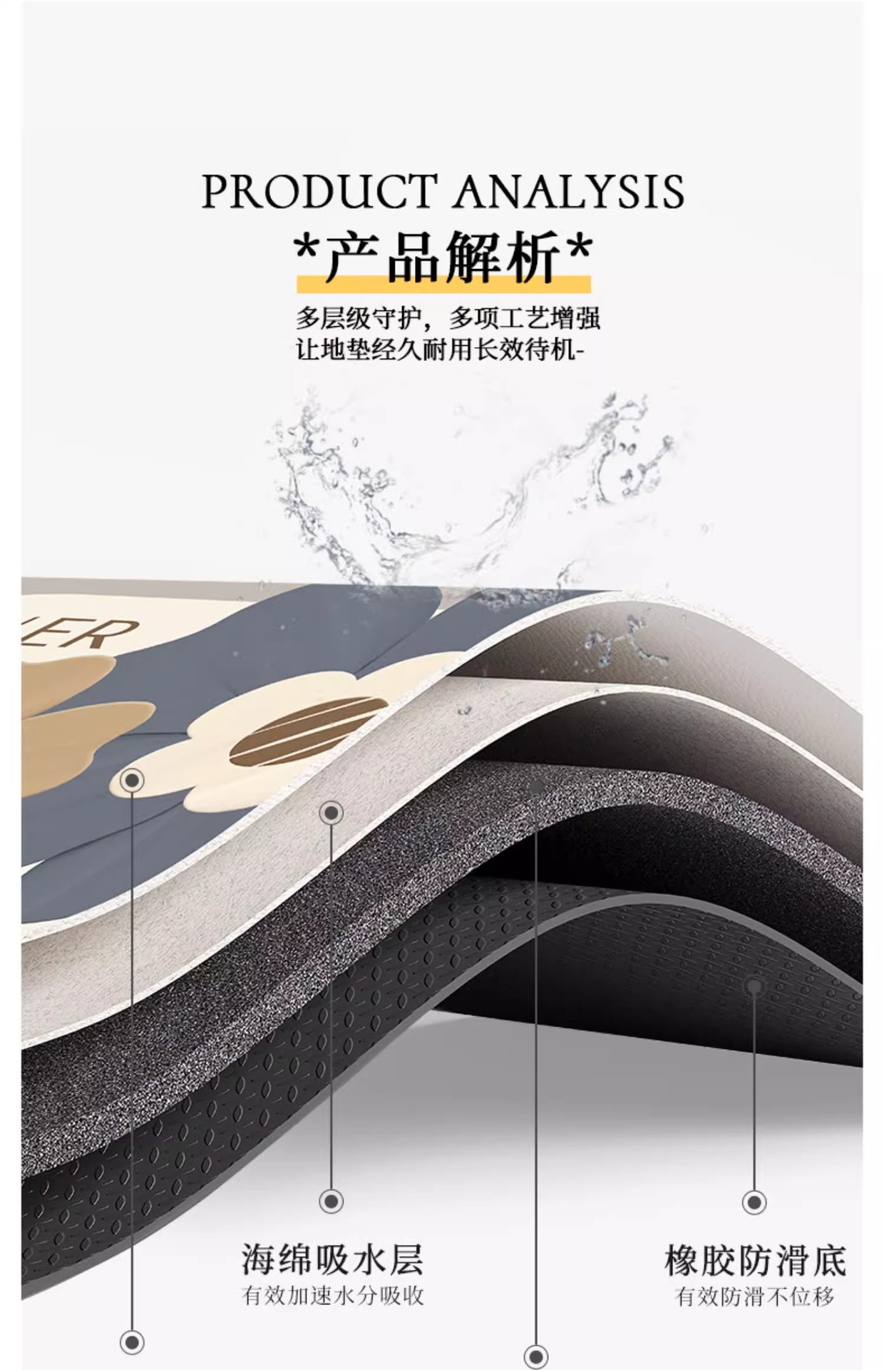 다중 소재 작은 신선한 바닥 매트 꽃 욕실 문 미끄럼 방지 흡수 매트 화장실 부드러운 매트 욕실 빠른 건조 발 매트