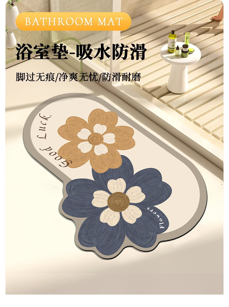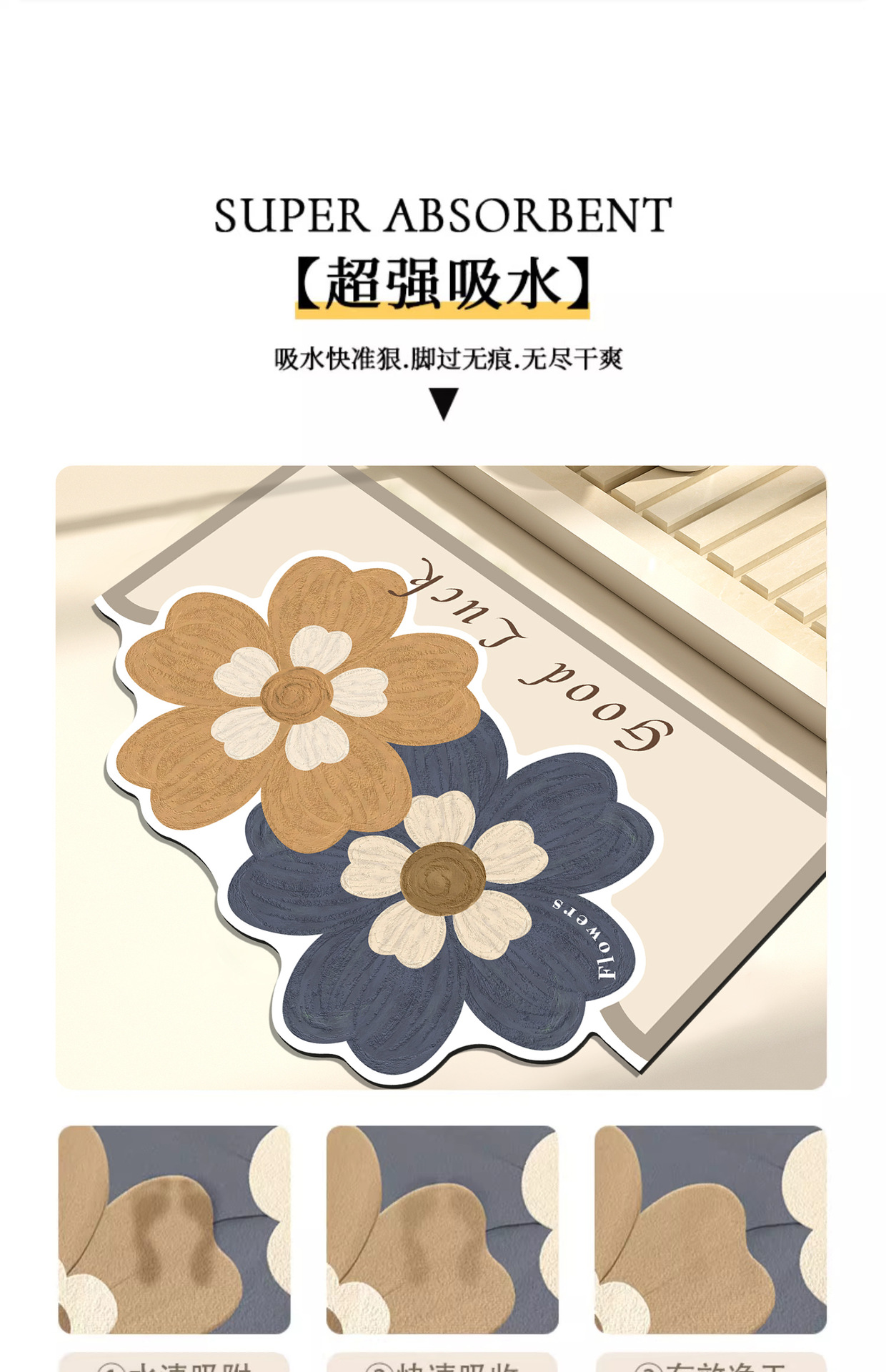 다중 소재 작은 신선한 바닥 매트 꽃 욕실 문 미끄럼 방지 흡수 매트 화장실 부드러운 매트 욕실 빠른 건조 발 매트스토어 가기