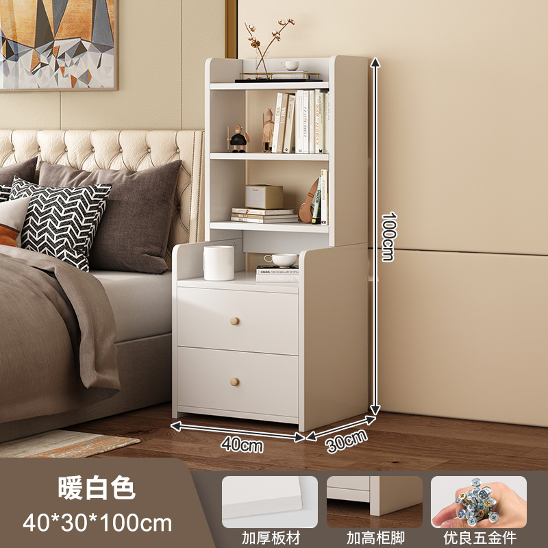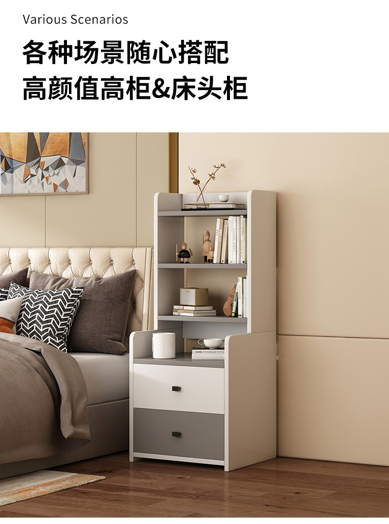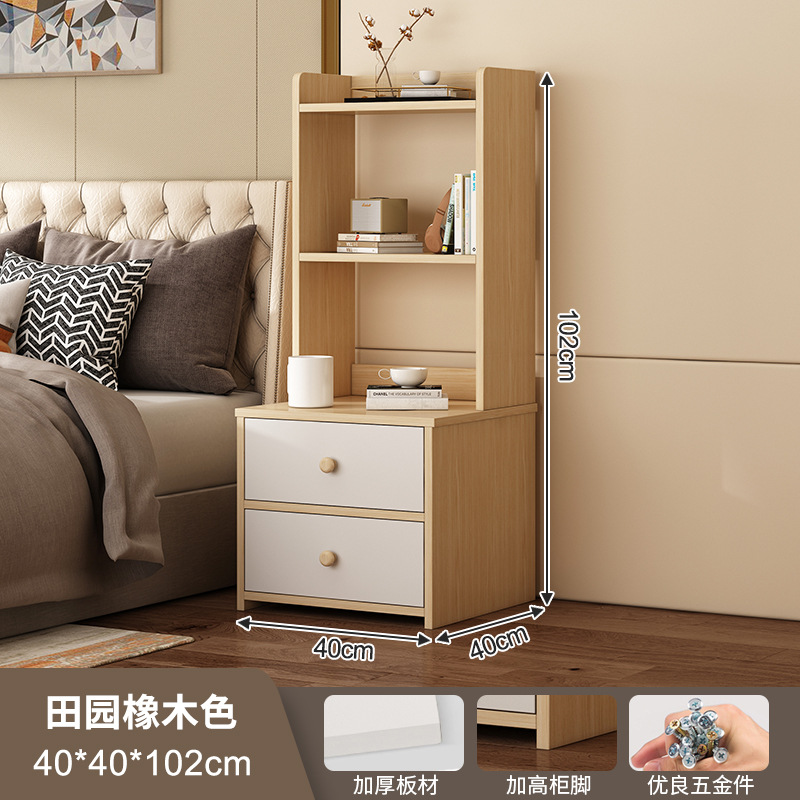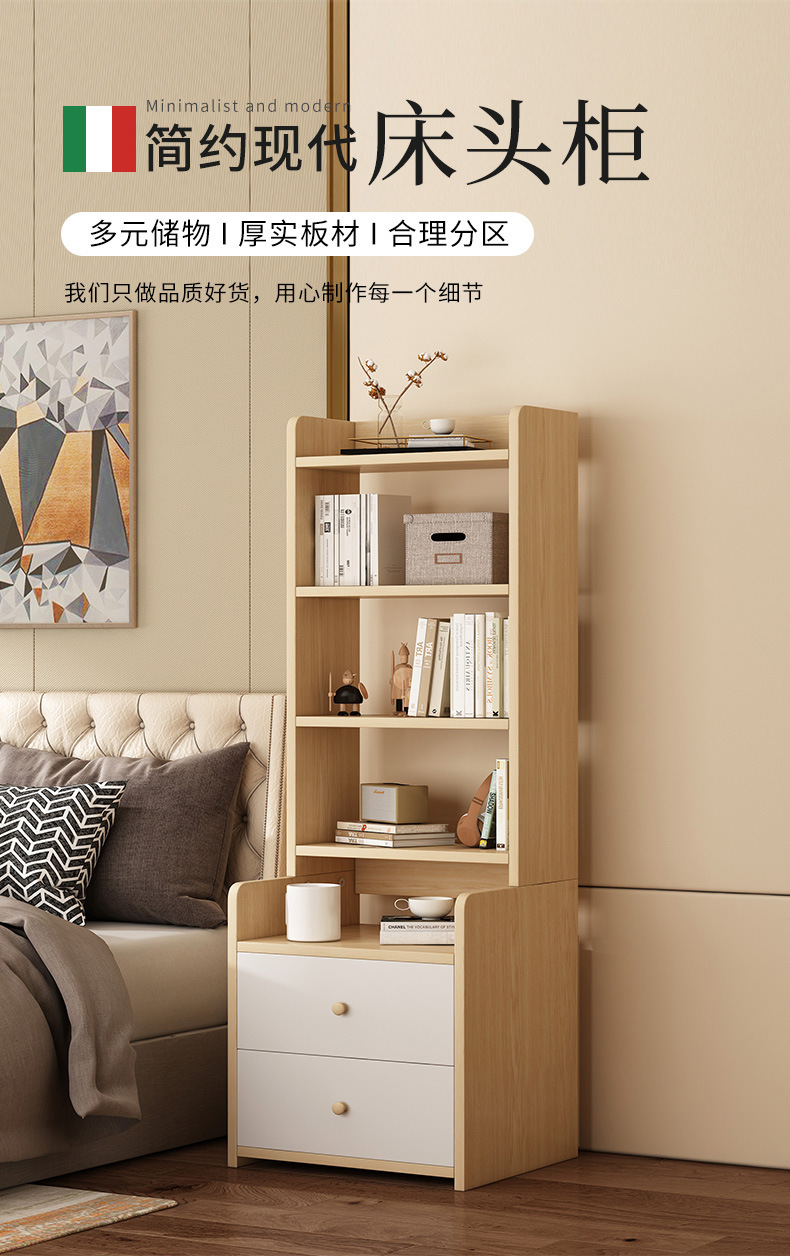 床头柜带书架简约现代小型家用卧室床边柜加高置物架简易收纳柜子