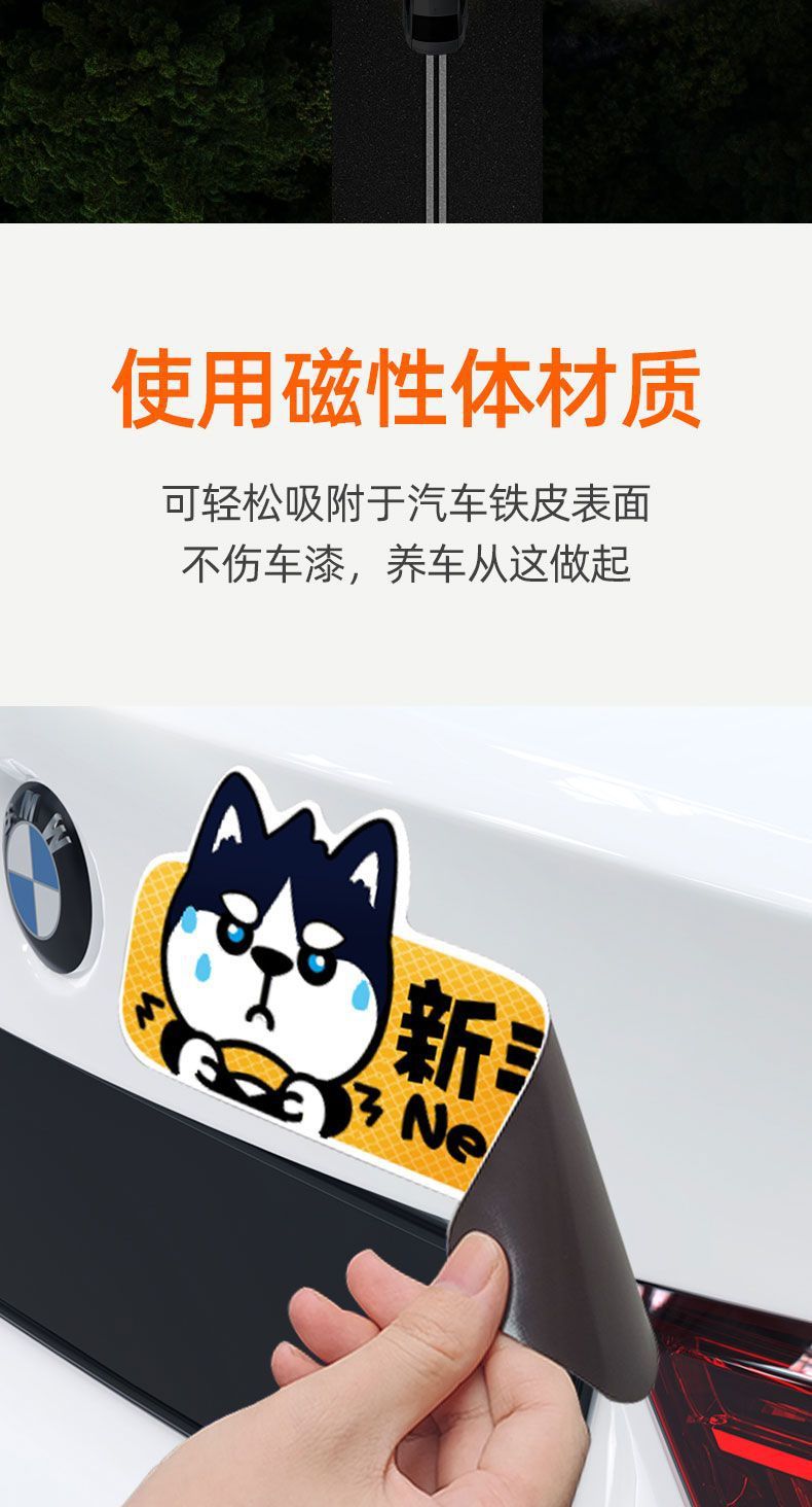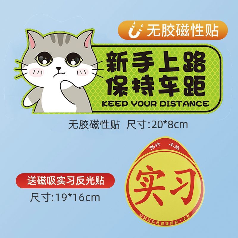 인턴쉽 자동차 스티커 도로 반사 로고 자동차 마그네틱 스티커 재미있는 자동차 로고 창조적 인 마그네틱 여성 드라이버 스티커